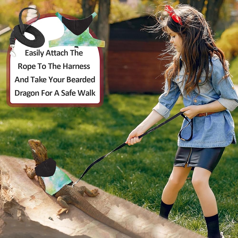 Durable Yet Gentle: Keep your bearded dragon safe with our sturdy yet soft canvas harness. Designed to protect your pet's skin, it offers long-lasting durability and vibrant, fade-resistant colors—perfect for all their adventures