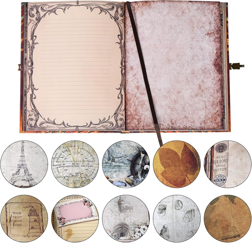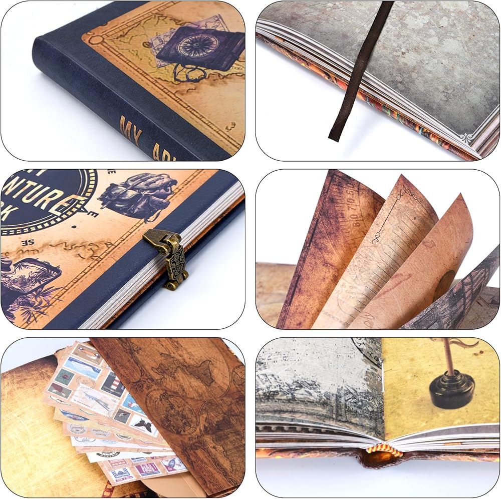 Customized Vintage Design:The album features a 3D embossed cover and vintage-themed pages, crafted from thick, fade-resistant kraft paper. Each page design varies, adding character and nostalgia to your scrapbook. A vintage lock with an engraved "Adventure Book" on top adds an elegant touch.