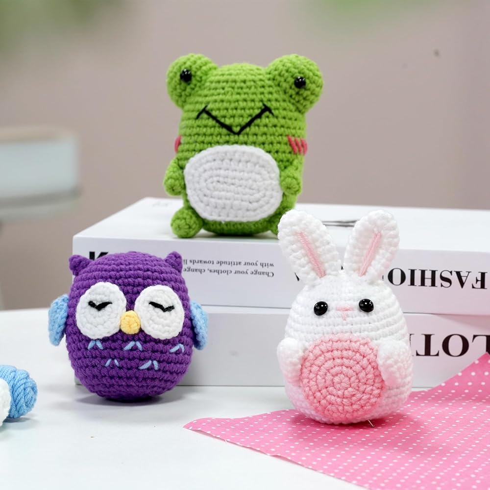 Baibos Crochet Kit for Beginners, Rabbit, Owl, Frog-3 Pattern Animals, Crochet Set for Crochet Lovers Starters with Step-by-Step Video Tutorials and Yarns, Hook, Accessories