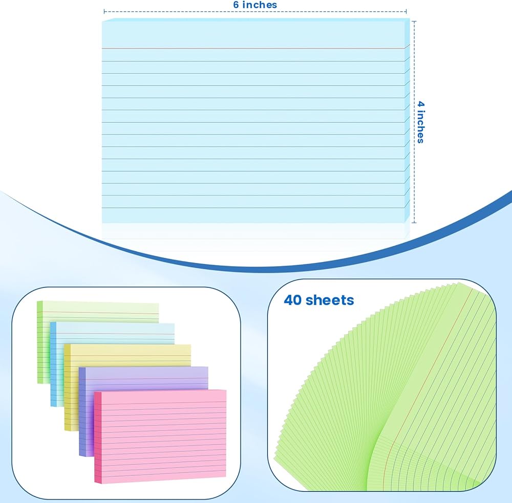 200 Count Index Cards 4x6 Inch, Colored Flash Card (40 Sheets Each), Note Taking for Students, Teachers, Professionals, Study Note Cards for Office Home School