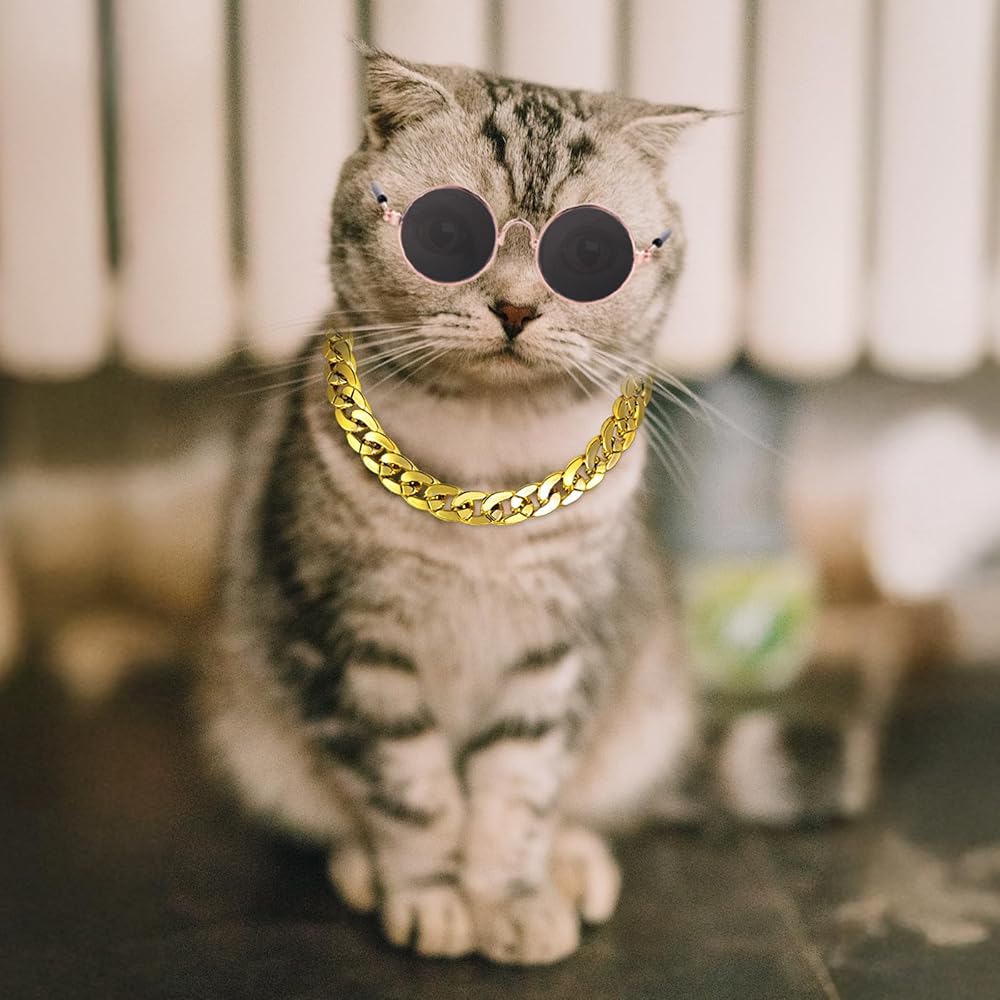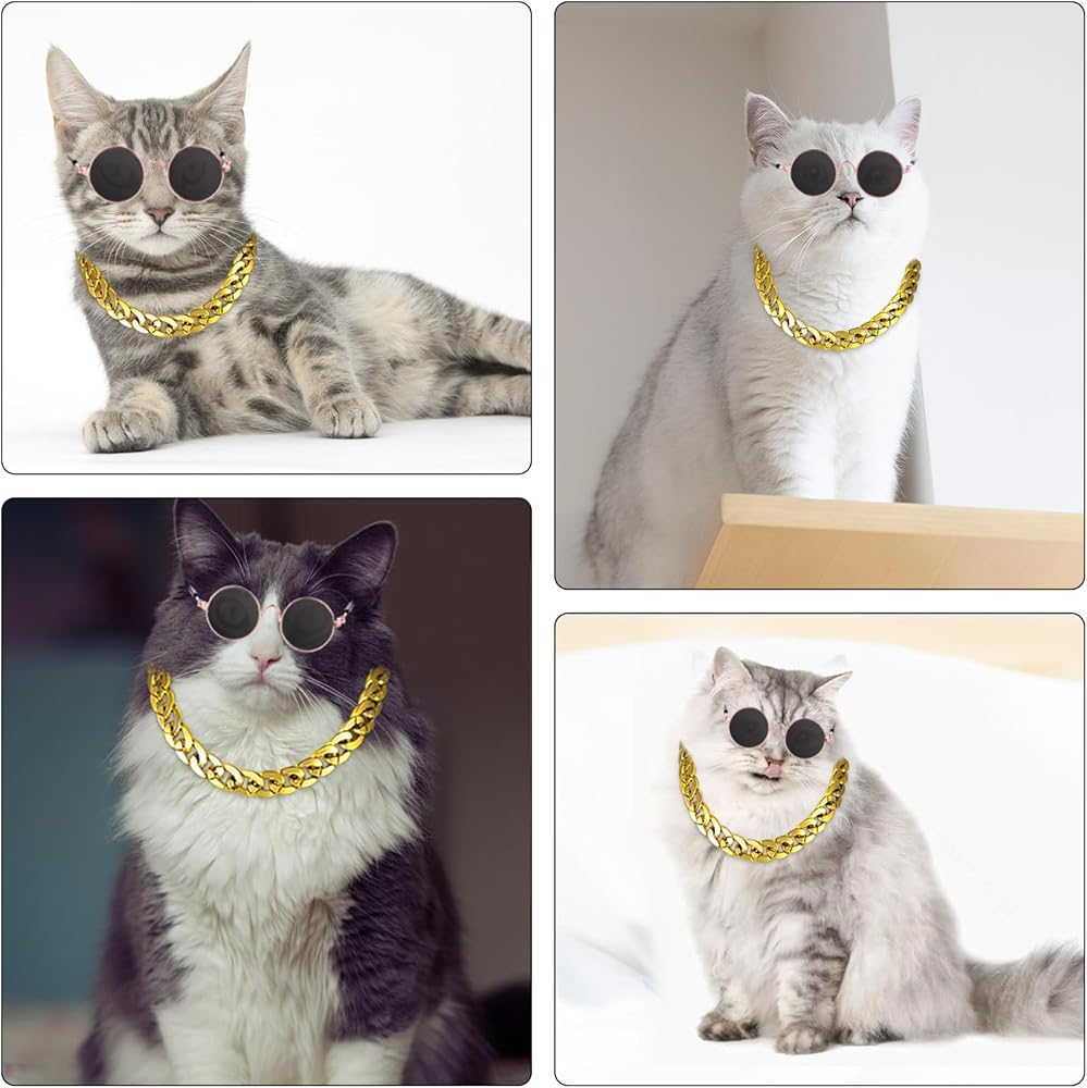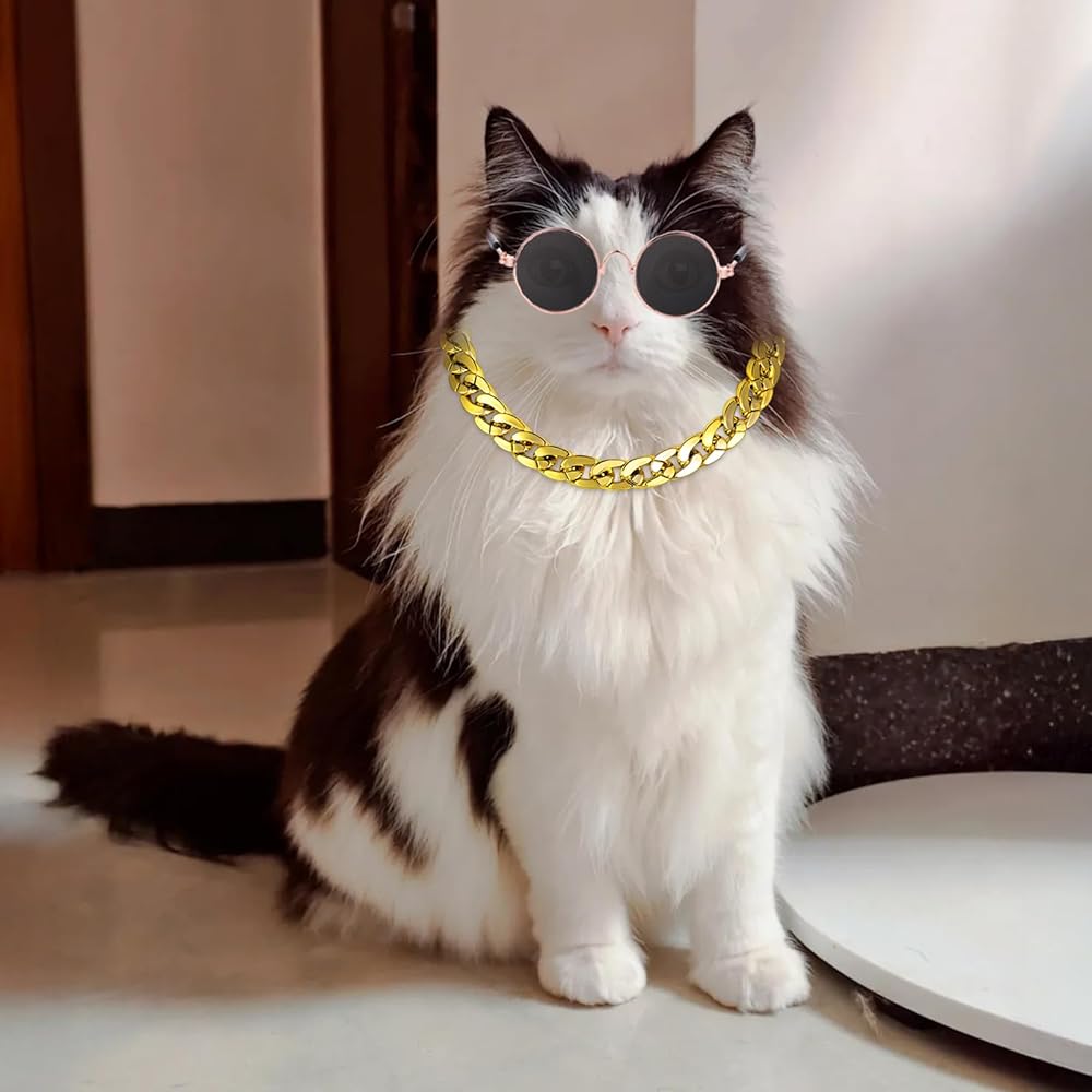 Funny Cat Sunglasses Collar Chain Set: Turn your feline friend into the coolest cat on the block with these novelty sunglasses! Perfect for creating viral-worthy moments, costume parties, or just showing off your pet's unique personality. The lightweight design ensures comfort while making everyone laugh with your cat's "too cool" attitude