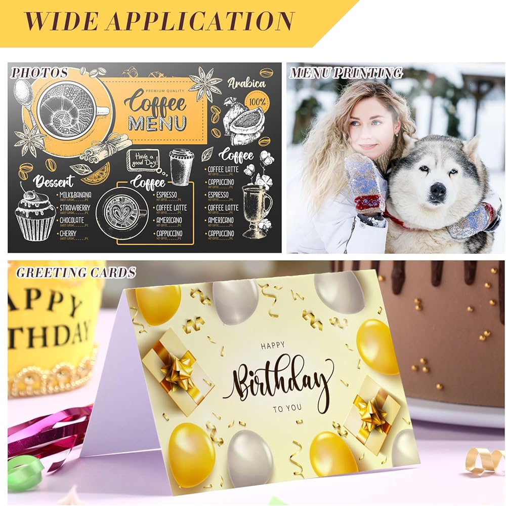 Proper Size to Use: each glossy photo paper for print in the bulk set measures approx. 4 x 6 inches/ 10.2x15.2 cm, nice for scoring and cutting down to your according sizes for unfold photo, greeting card, calendar, art, menu printing, you can use it with confidence