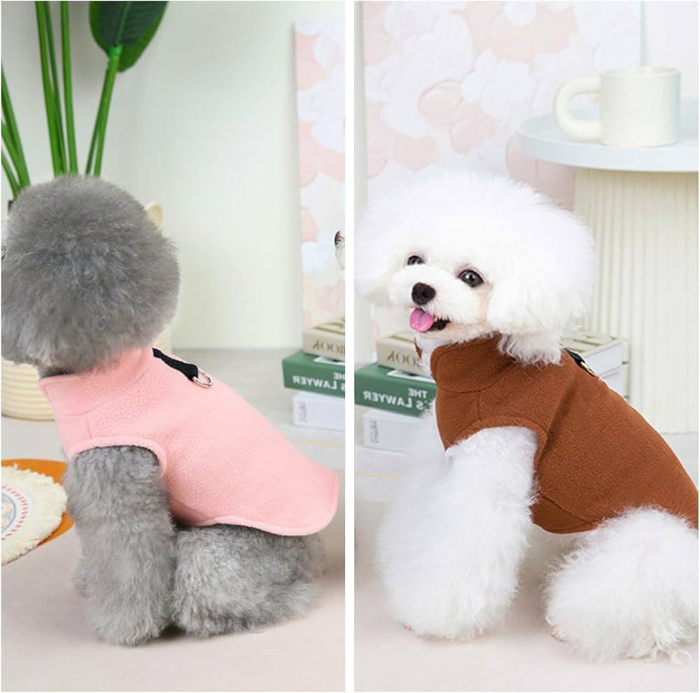 2 Pack Dog Sweater Fleece Vest Pet Warm Pullover Fleece Jacket with D-Ring, Fall Winter Dog Clothes Cold Weather Coat for Puppy and Small Dogs Unisex (Pink Brown, Medium)