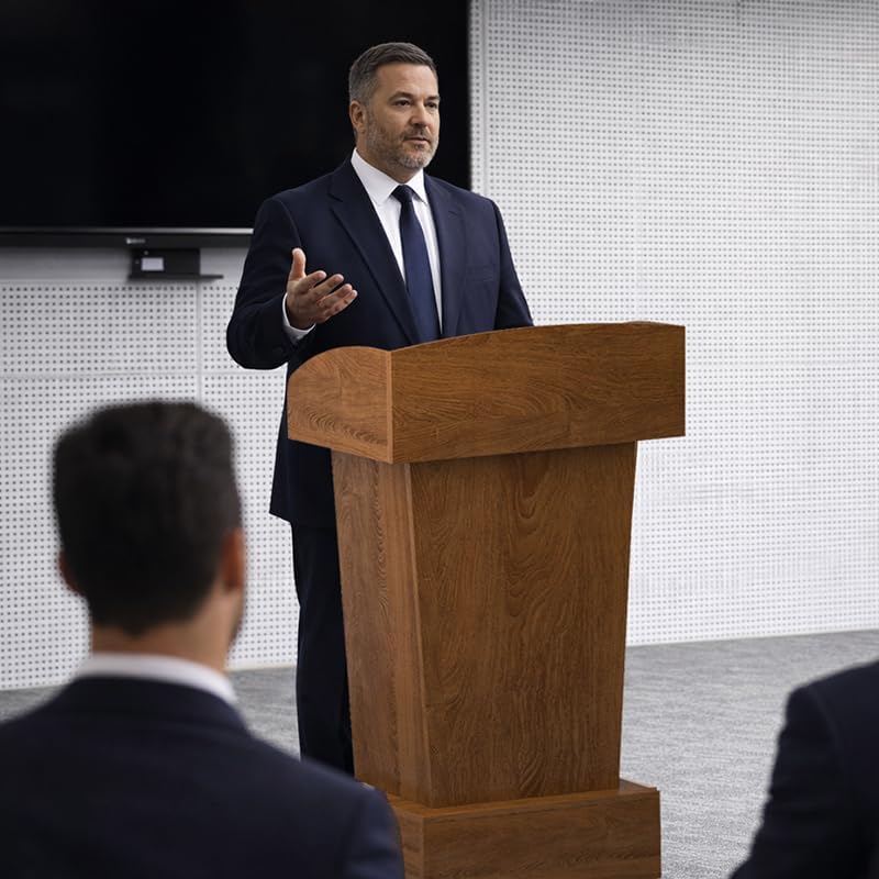 Floor-standing design: The podium features a floor-standing design for added comfort when discussing, teaching, or presenting. It's easy to use. The bottom is thickened and widened, making it less likely to shake during use. Large Storage Capacity: The podium stand also has a large storage capacity to help organize your clutter. You can place your cups on the platform under the tabletop and store your carry-on items in the open compartments. Easy to assemble and portable: No need for any complicated assembly process. Just use a screwdriver to handle it. Users can take this sophisticated and lightweight lectern stand wherever they need it. Specification: Product type: podium, lecture podium, welcome desk Material: wood Installation: Assembly required Product Dimensions: 23.62"L x 15.75"W x 45.28"H Weight:30.14 lbs Applicable scenes: Office, living room, bedroom, conference room Is it removable: Yes Storage space availability: Yes Applicable scenes: restaurants, churches, weddings, classrooms, seminars, schools, families, sales centers Package Contents: Board, screws (installation accessories: screwdriver and gloves) Service guarantee: We provide high quality 24-hour customer service. If you have any questions about the product, please contact us via email as soon as possible and we will solve your problem.