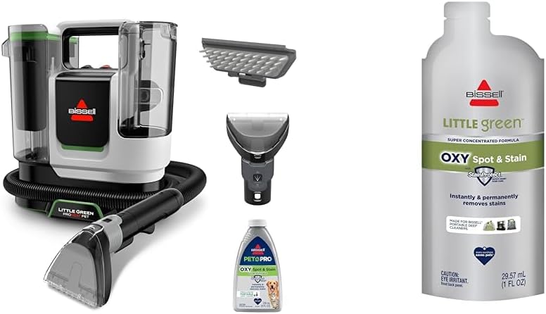 BISSELL Little Green Proheat Pet, Portable Deep Cleaner with Heated Cleaning Technology + NEW BISSELL Little Green Pro Oxy Spot & Stain Super Concentrate Cleaning Formula