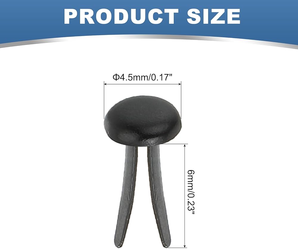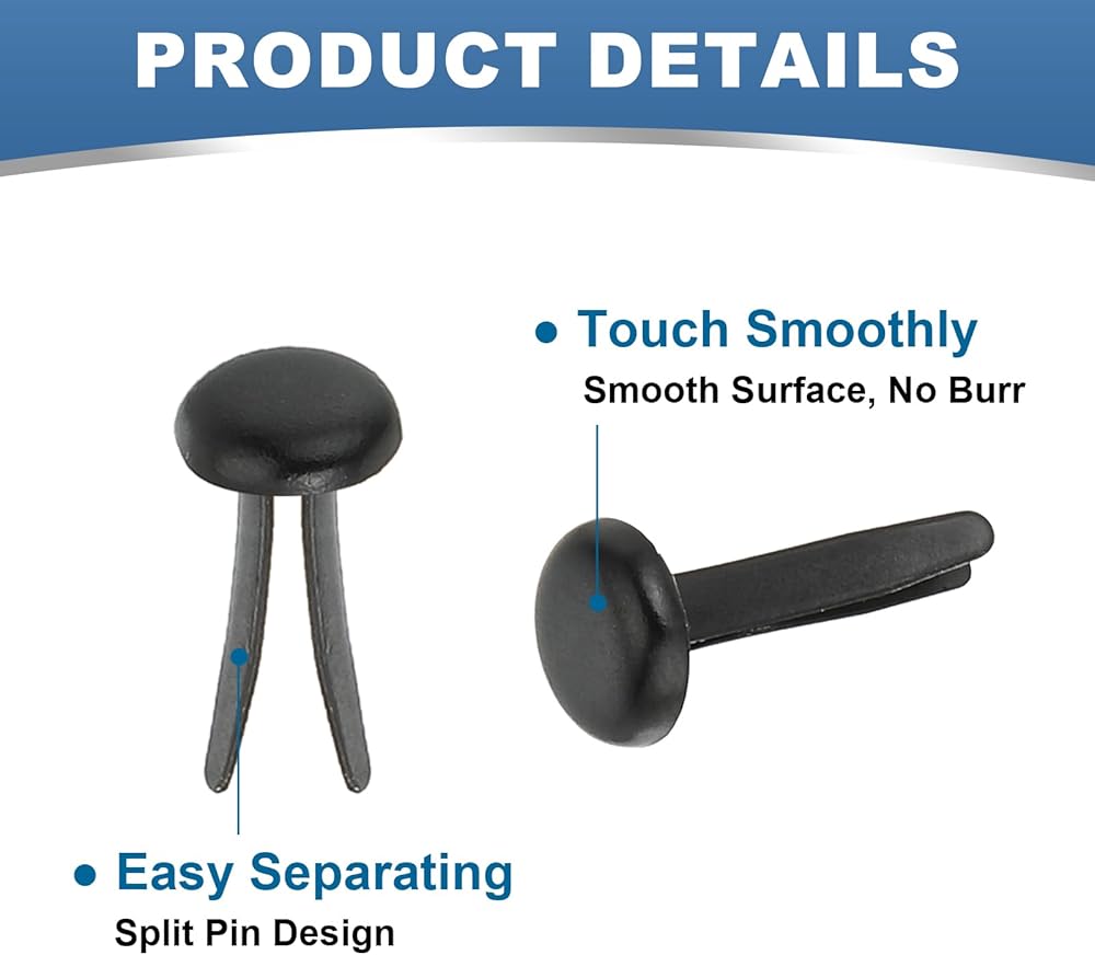 PATIKIL 1000 PCS Paper Brass Fasteners Split Pins Pastel Mini Metal Brads Round Head Plated Fastener for Craft Art Scrapbooking DIY Supplies, Black, 4.5 x 8 mm