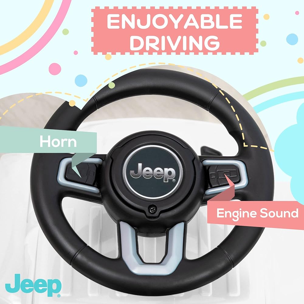 Sound Effects: Sound effects are at the core of this design. Engine noises bring the car to life, so when kids say "vroom vroom" there are real noises to go along with their pretending, and the wheel features a button to sound a horn, giving kids the power of noise to make their play more enjoyable.