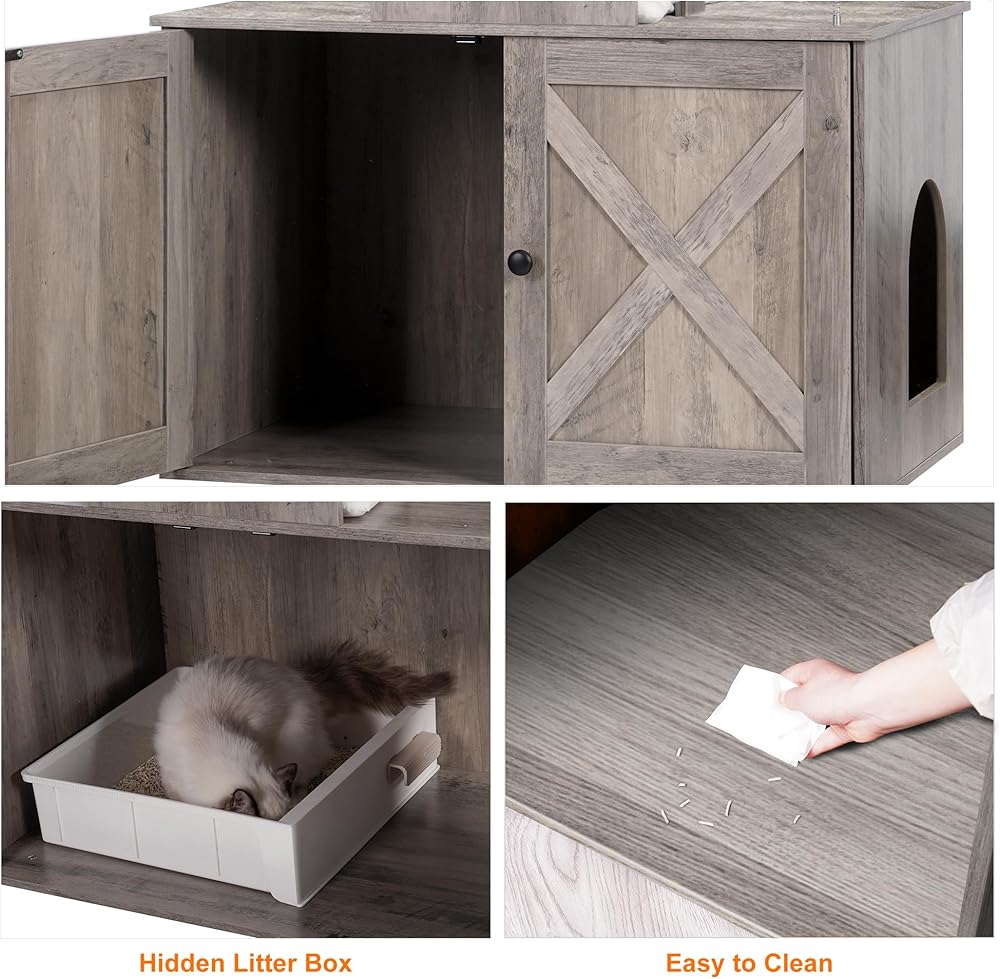 [Practical Storage Cabinet] Put a cat litter box in the Enclosure , there will be a private washroom for your kitties, less smell in your home. The litter box room doors are magnetic, cats cannot easily open doors from the inside. Door designed with vents, bring fresh air and soft light in