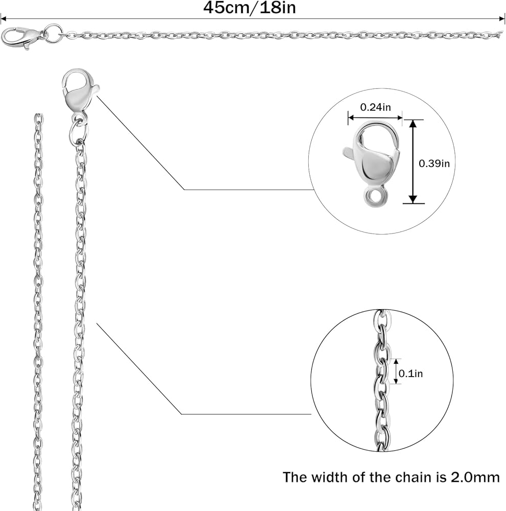 Package Included:24 pack 18inches 2mm stainless steel necklace chains with lobster clasps,easy to put on and take off,convenient to wear,great for charm necklace jewelry making.