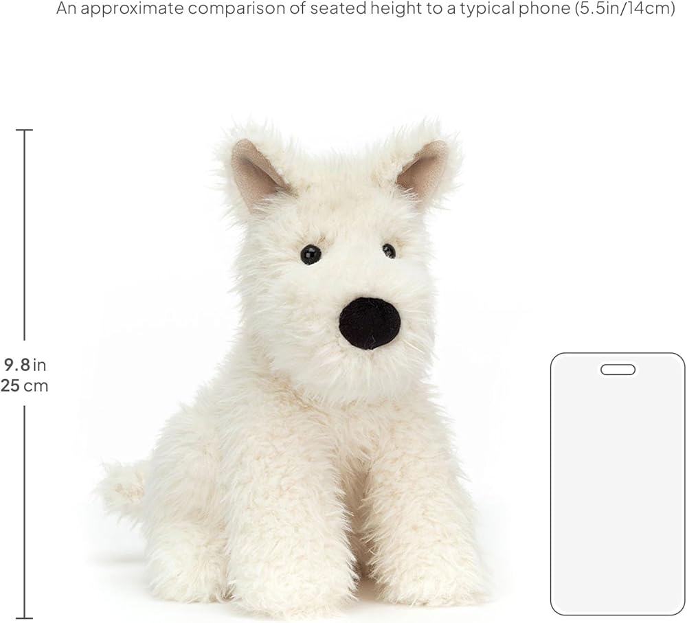 Munro Scottie Dog: A loyal companion for dog lovers young and old, Munro Scottie Dog sits up tall to show off those pointed ears and perfect terrier tail. Covered in tufted white fur, this polished pooch has black beaded eyes and a fuzzy black nose to sniff out the next adventure!