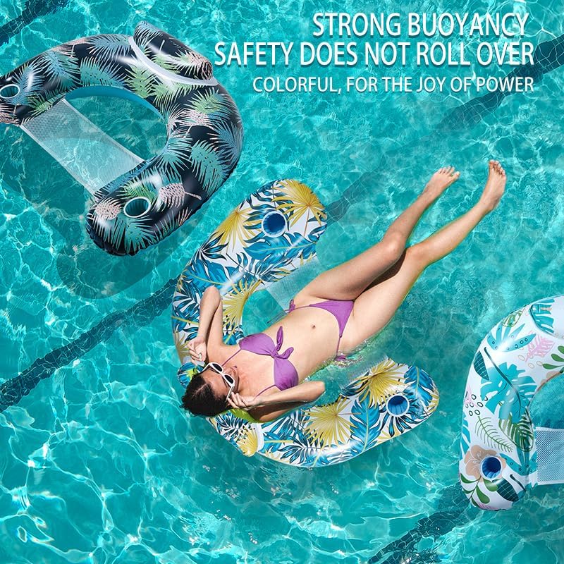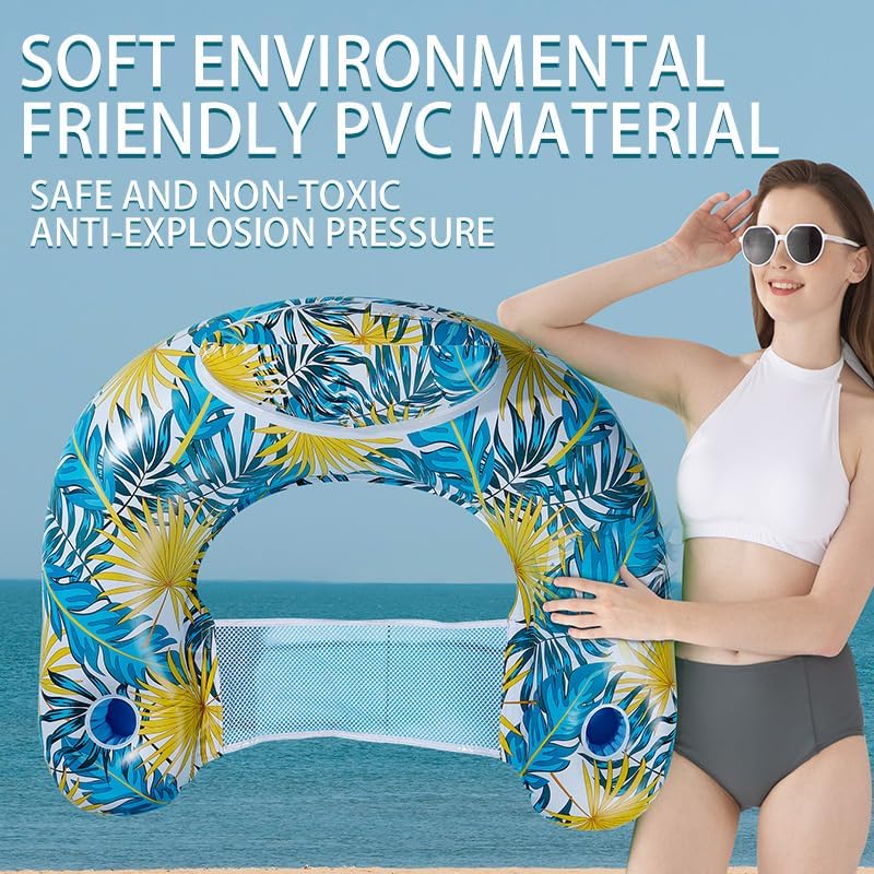 3. Convenient Cup Holders for Hands-Free Relaxation Stay refreshed with dual oversized cup holders (fits 12oz cans, tumblers, or cocktail glasses), so you can keep drinks within reach while floating. The reinforced stitching and durable PVC ensure long-lasting performance in pools, beaches, or lakes—perfect for sipping your favorite beverage without worrying about spills!