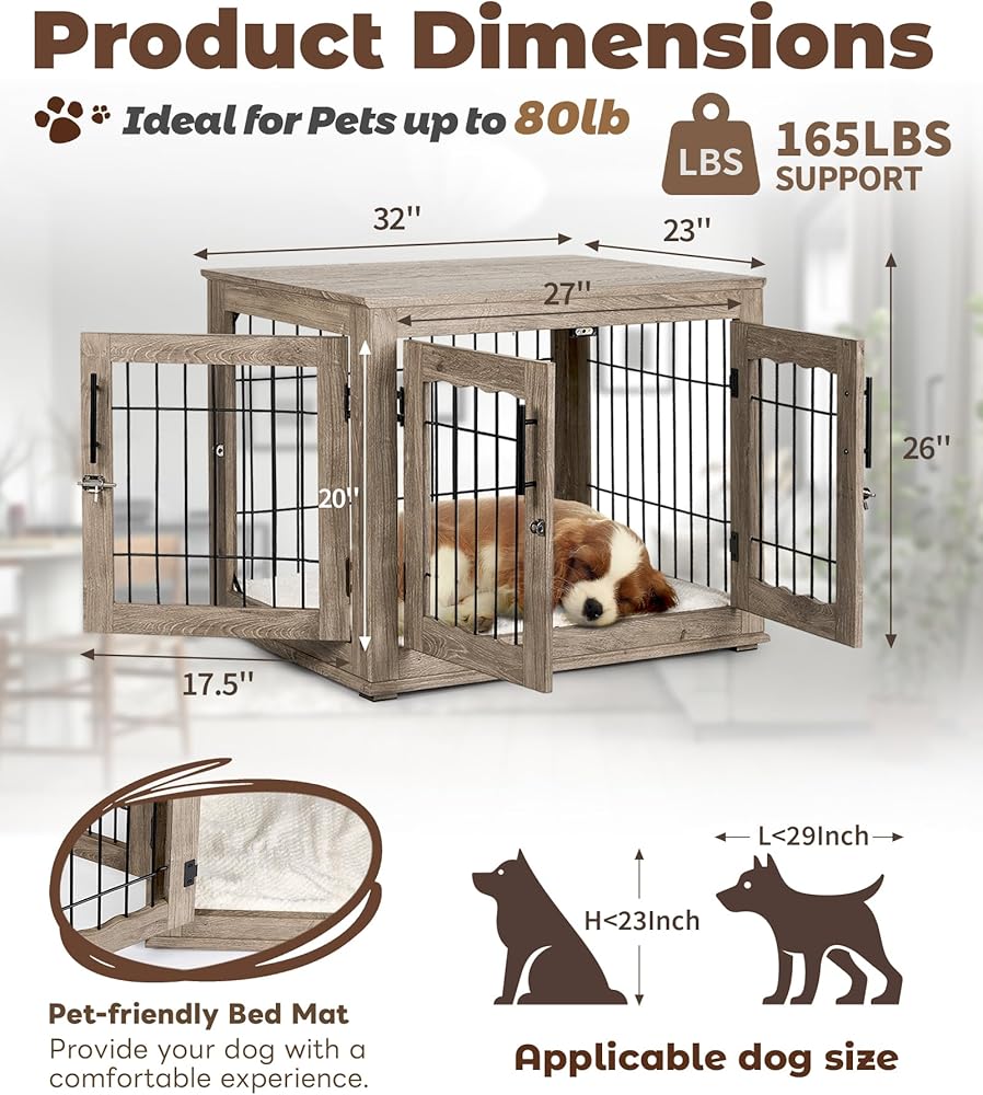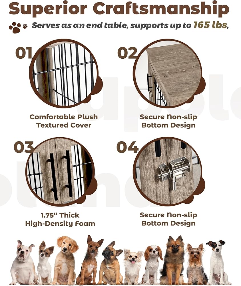 DURABLE CONSTRUCTION - Made with chew-resistant particleboard & density fiberboard with metal wire, this dog crate is built to last, providing a safe and secure environment for your dog. The robust construction ensures long-term use and pet-safe durability.