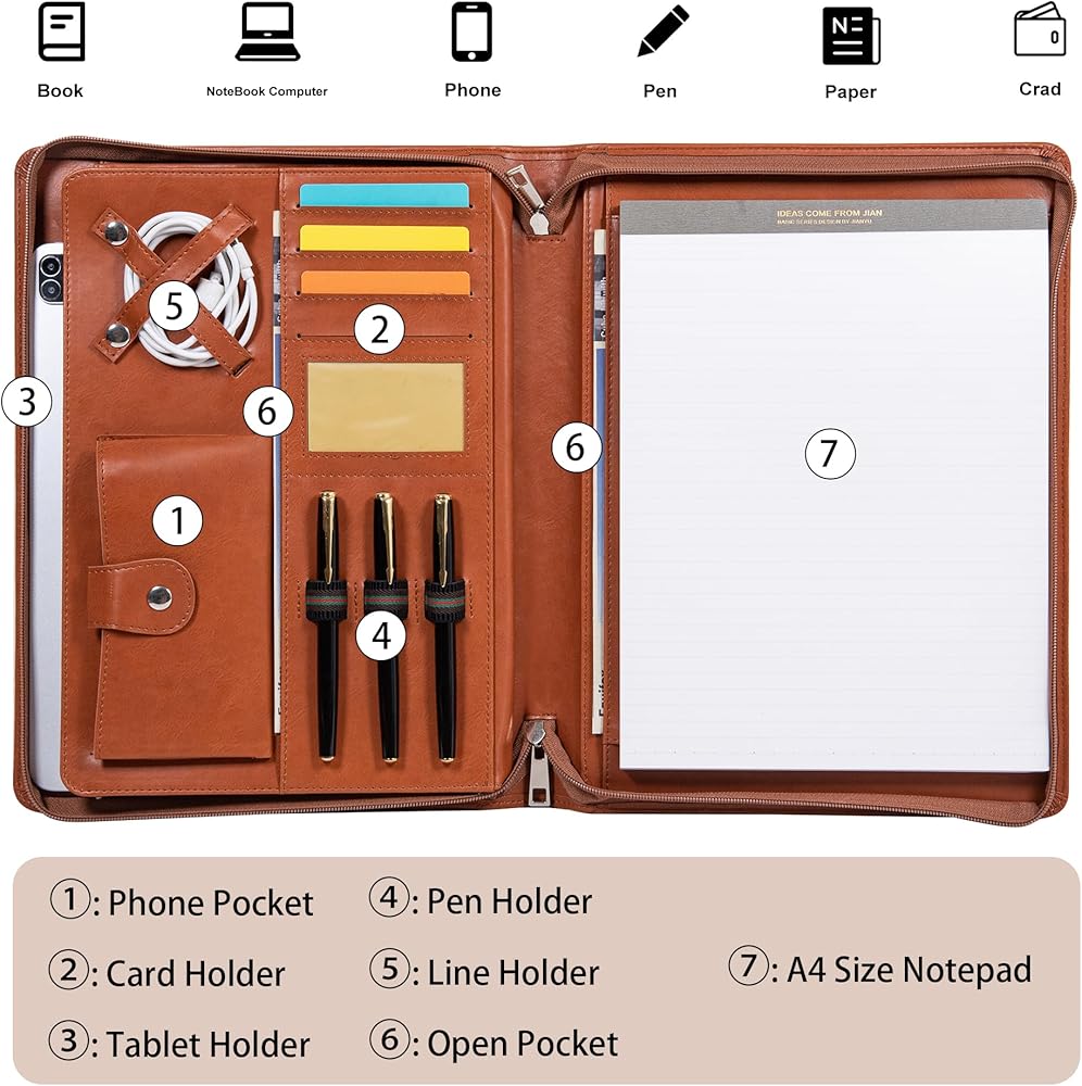 Versatile and practical: It adopts the universal size A4/US letter size, and comes with a text board to meet the writing requirements of daily meetings. It is also equipped with multi-functional pockets for checks, passports, ID cards and bank cards. The pen holder is used to place pens or pencils, mobile phone pockets and tablets.