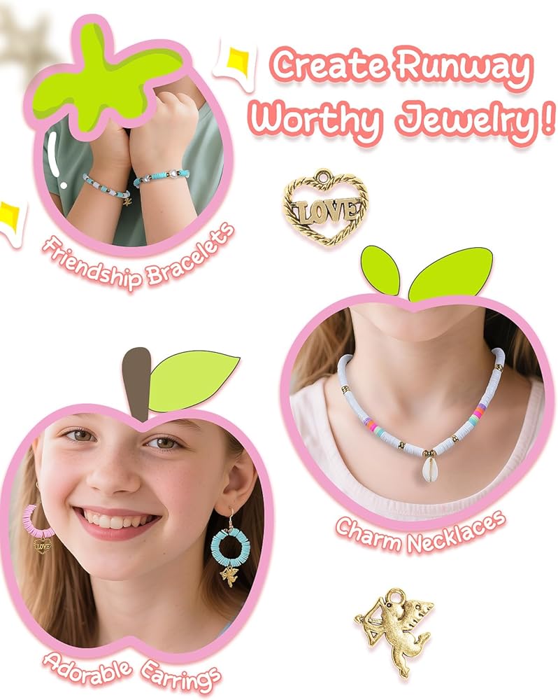 Mio Angle Clay Beads Bracelet Making Kit 24 Colors Flat Preppy Beads for Friendship Jewelry Making Polymer Heishi Beads with Charms Gifts for Teen Girls Crafts for Girls Ages 8-12