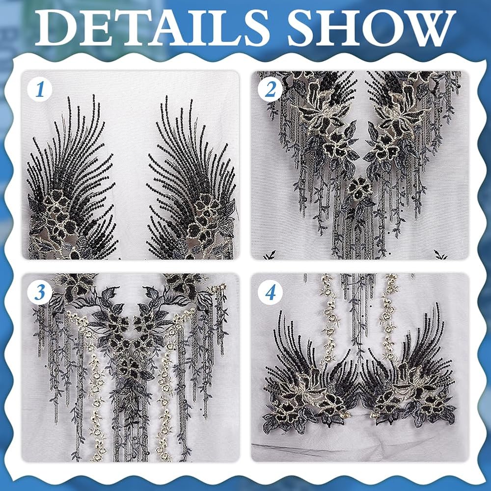 Wide Usage: The floral beaded lace applique is perfect for wedding projects, bridal gowns, bridal headpieces, hairpin making, bridal dress applique, bridal belt sewing; also perfect for craft lovers DIY clothes decoration or repair clothes can be used for shirts, skirts, costumes, etc