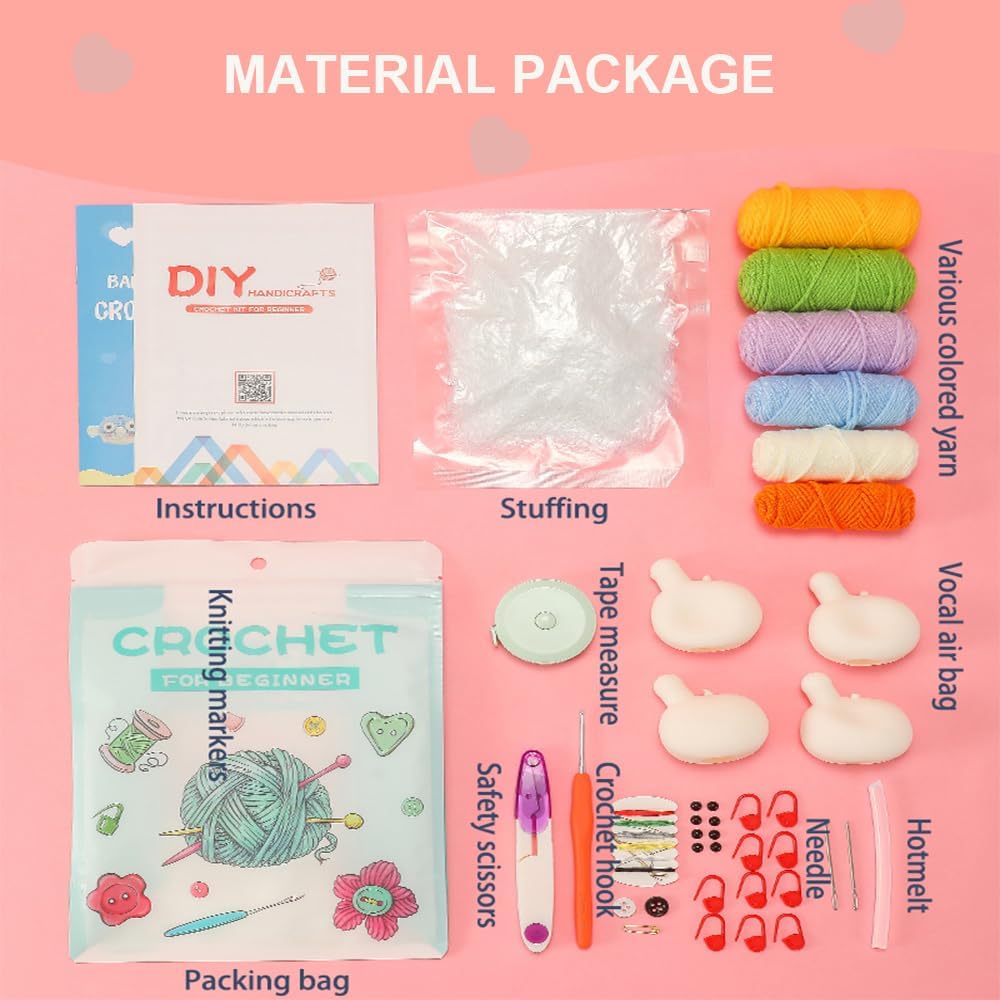 【Suitable Crochet Kit for Beginners】Crochet animal kit includes everything you need to get started: yarn, sufficient padding, colorful needle and thread bags, eyes, stitch markers, crochet hooks, scissors, tape measures, and more, as well as a beginner's basic crochet manual.