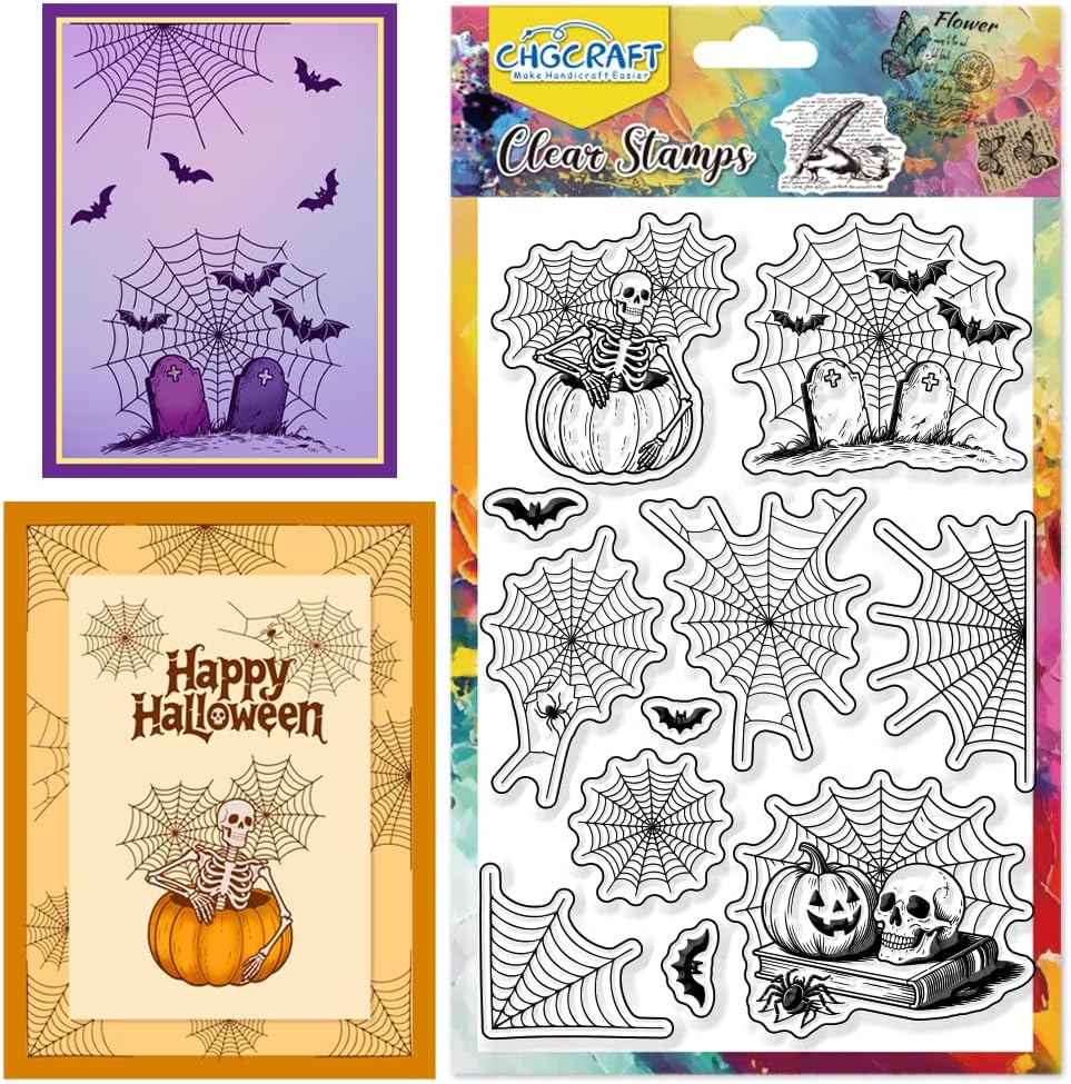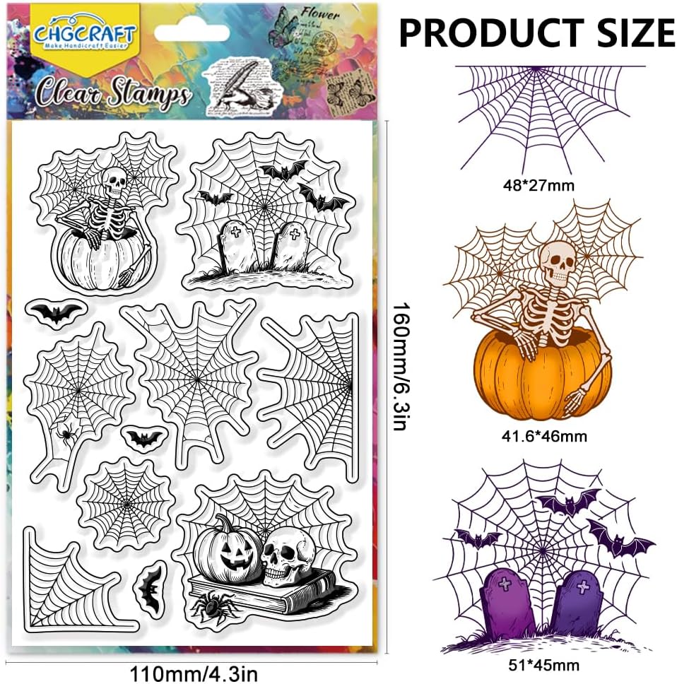 CHGCRAFT Halloween Elements Clear Stamps Cobweb Transparent Stamps Bats Silicone Clear Stamp Seals for Carding Making DIY Scrapbooking Photo Album Decoration, 4.3x6.3 inch