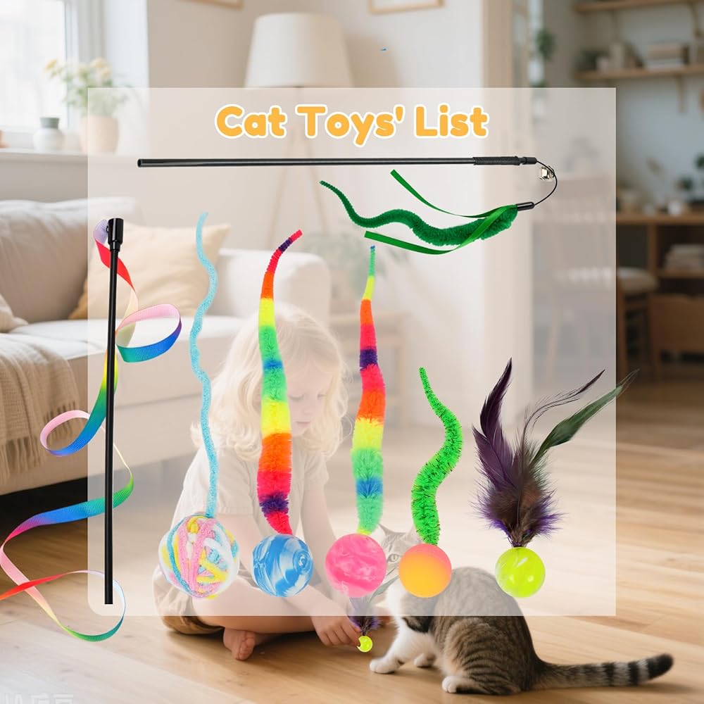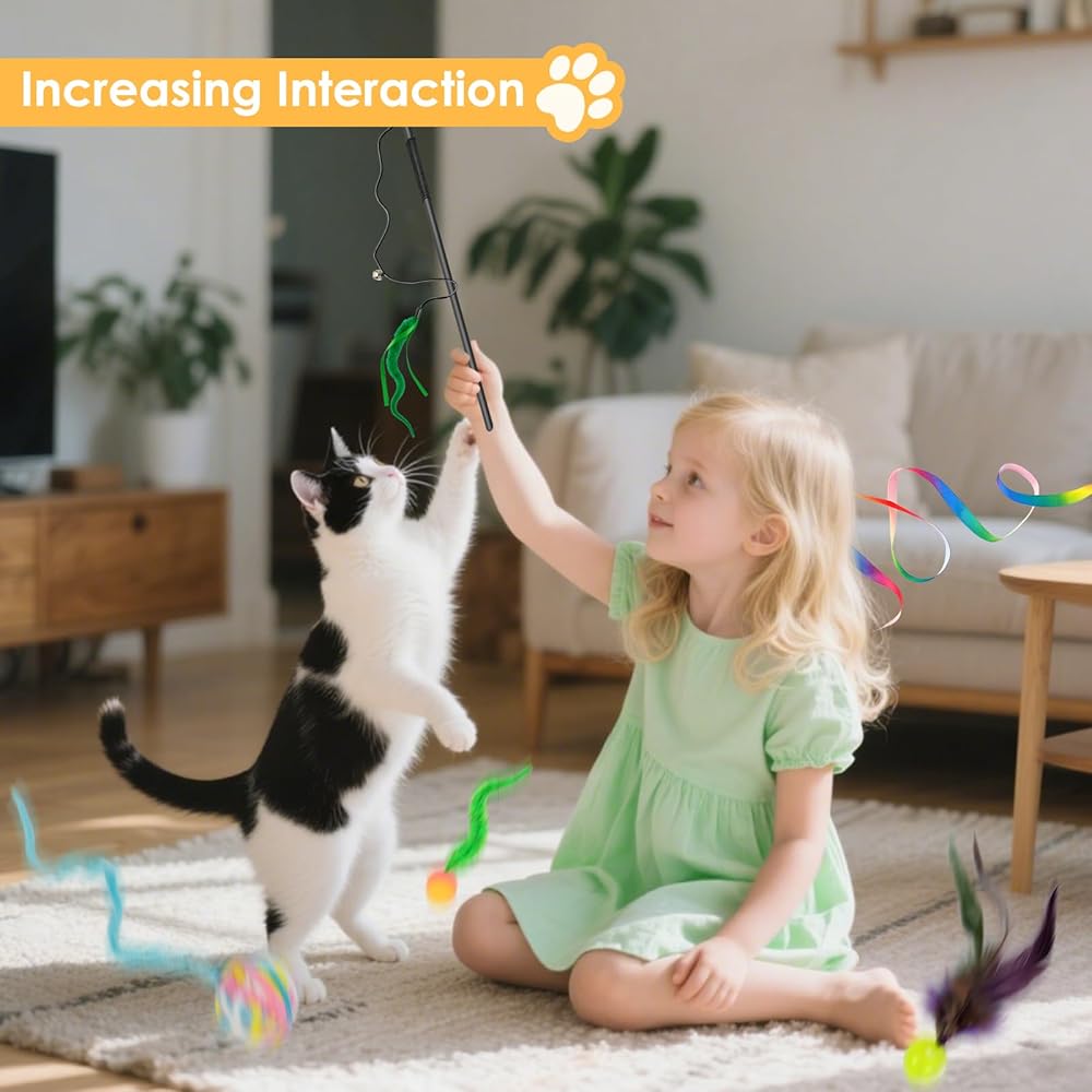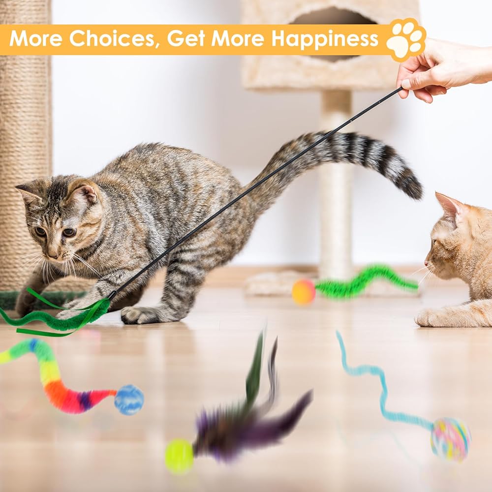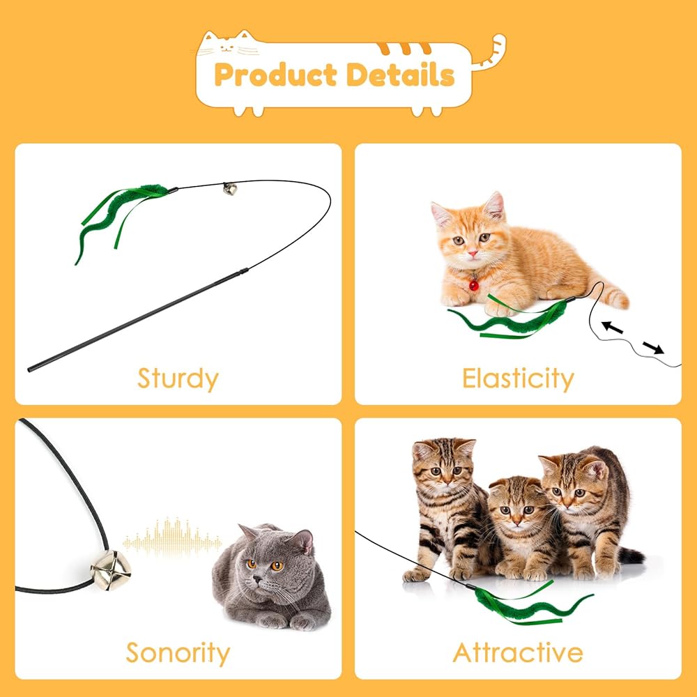 More Joy: Cats enjoy chasing objects, especially when playing with their owners. We offer each cat family member one cat stick, two elastic balls with long tails, and one elastic ball with feathers. These four items satisfy all the pleasures of cats at once!