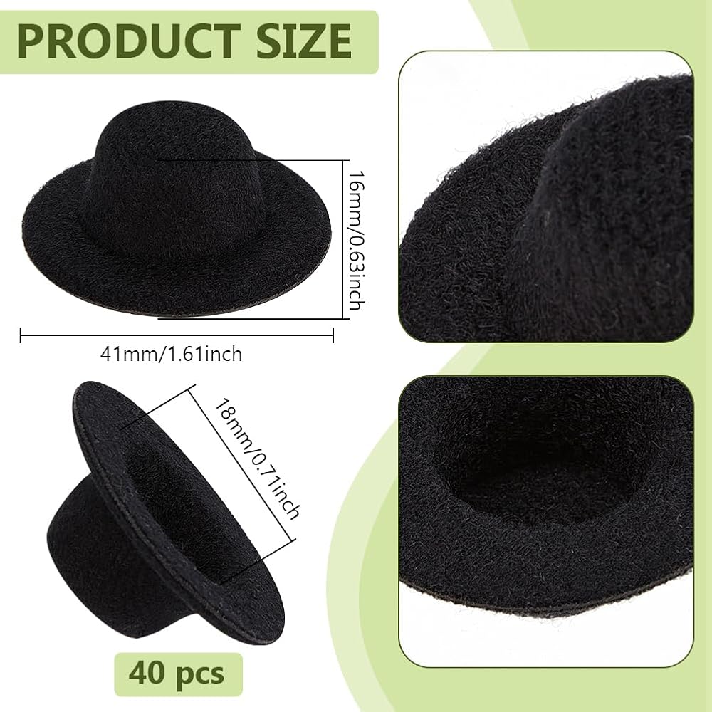 Package Included: 40 pcs miniatures tiny top hat, the quantity is enough for general use. Classic black color for your various designs
