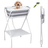 Portable Dog Bath Tub and Dog Washing Station, Collapsible Elevated Pet Tub for Bathing, Showering, Grooming, Pet Bathing Basin for Small to Medium Dogs, Cats and Other Pets (Built-in Drainage System)