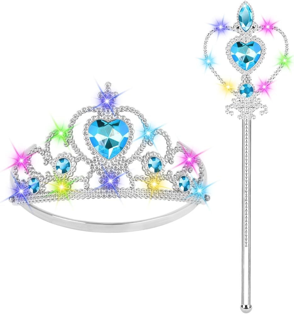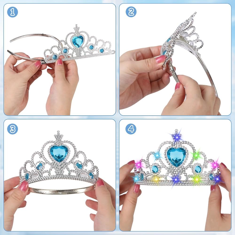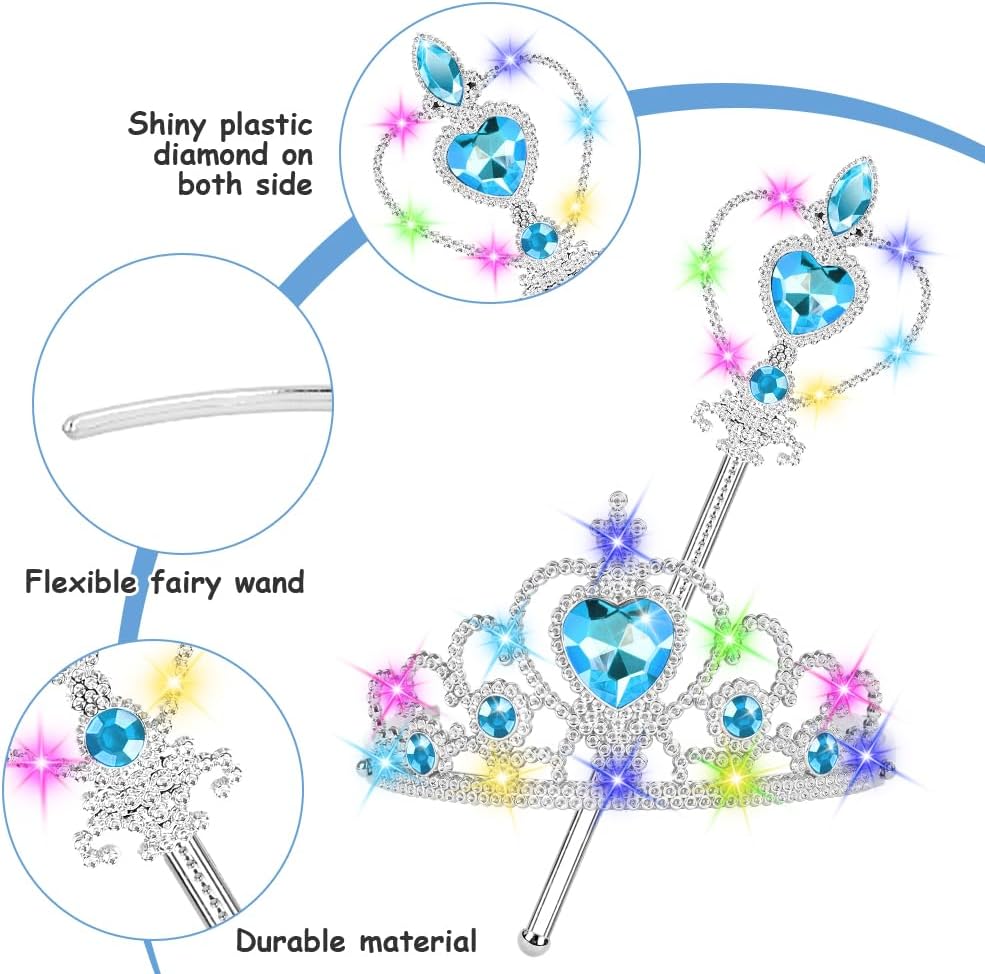 Princess Accessory Set: Our princess accessories include a light-up princess tiara crown and a light-up princess magic wand. Kids' costume jewelry sets are suitable for little princesses aged 3 to 6, making every day of the little princess full of magic!