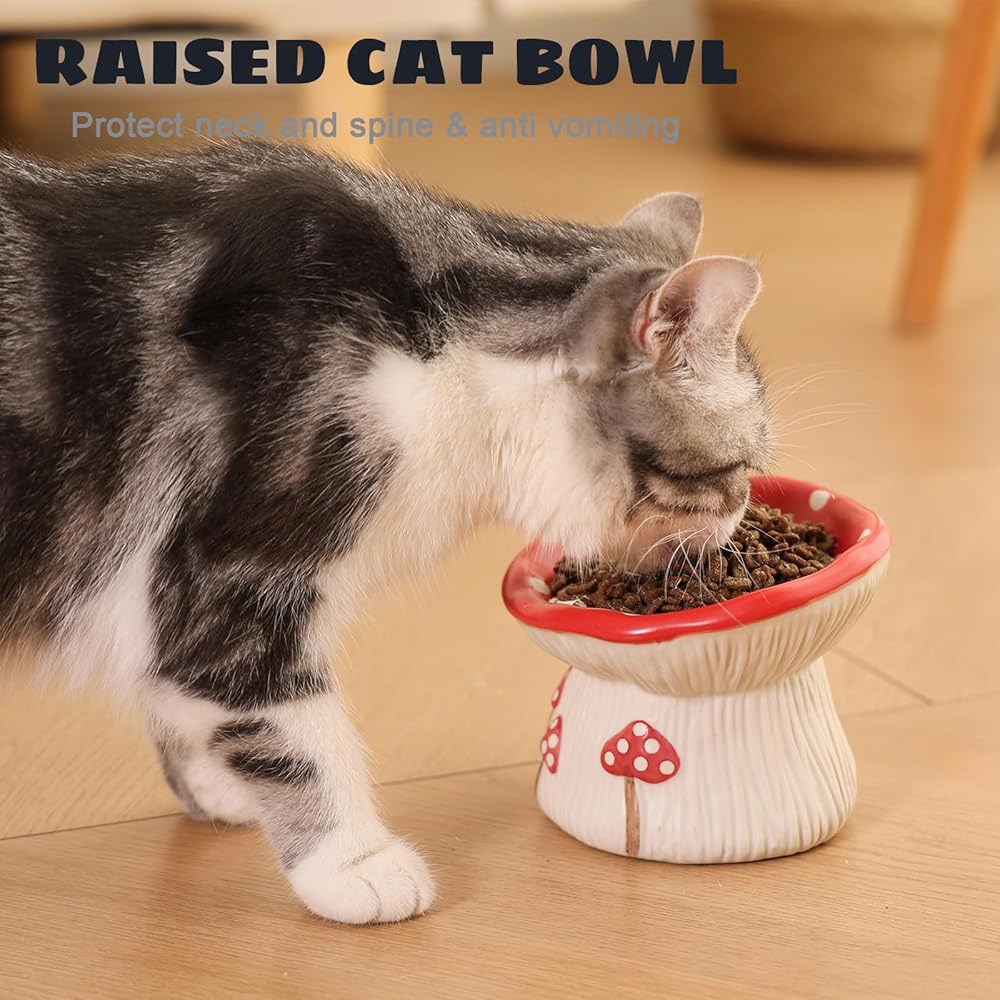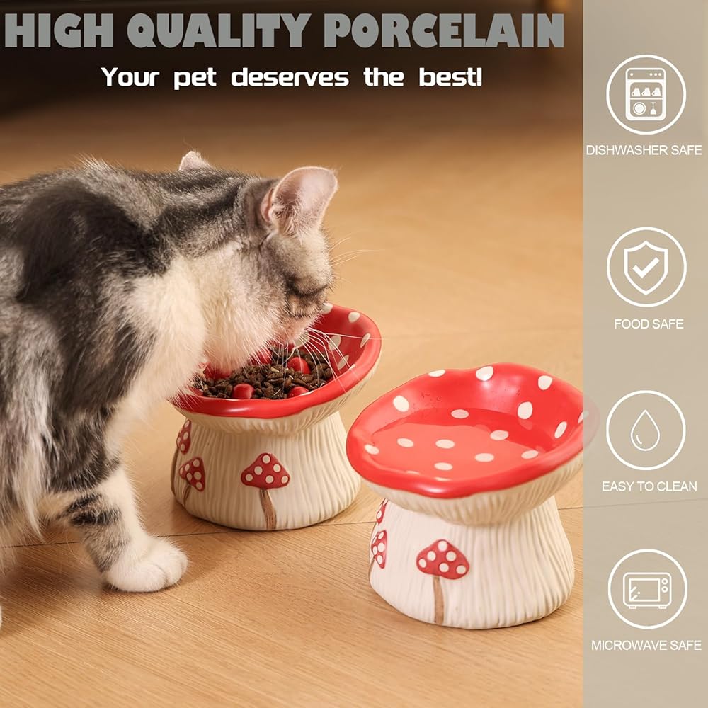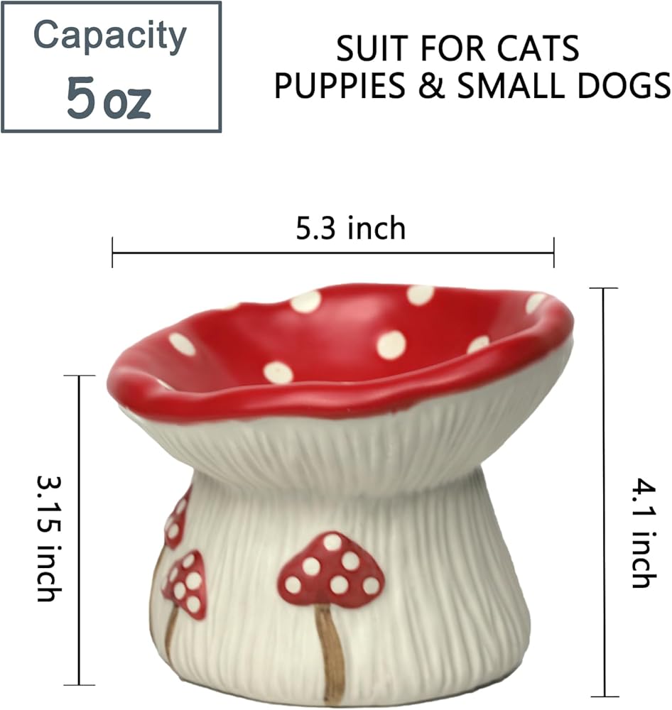 Unique Red Mushroom Shape: Featuring a charming red mushroom design, this cat bowl adds a playful and stylish touch to your home while serving as a functional pet accessory.
