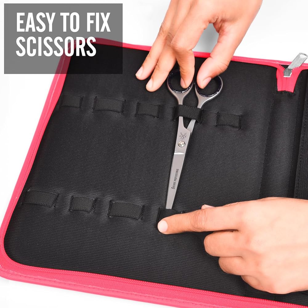 🧳Full Zipper: This scissor case has a full zipper design. It guarantees the protection of your beauty scissors, hair cutting scissors, dog grooming scissors, etc.