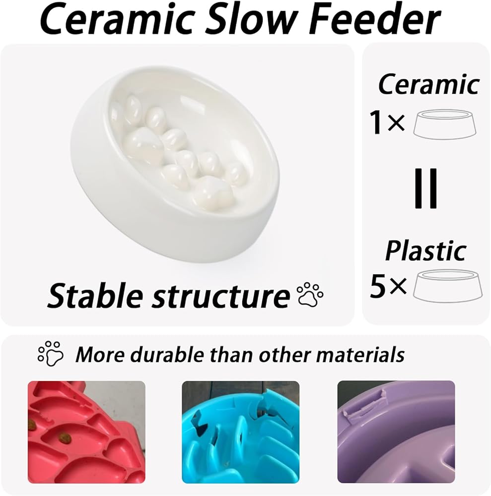 Safe Ceramic Material:Deapeey puppy bowl slow food is made of ceramic, waterproof and durable, not damp or moldy. Wear resistant, scratch resistant.The smooth ceramic surface makes cleaning a breeze. Simply rinse it under the faucet or toss it in the dishwasher-it's that easy