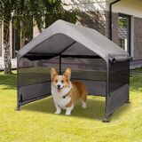 Summertrail Extra Large Dog House Outside, Dog Tent Outdoor, Big Dog Shade Shelter Doghouse Canopy with Three-Sided Breathable Mesh Windows, Gray Sun Rain Cover for Pet Cat Livestock 4'x 4'x 3.3'