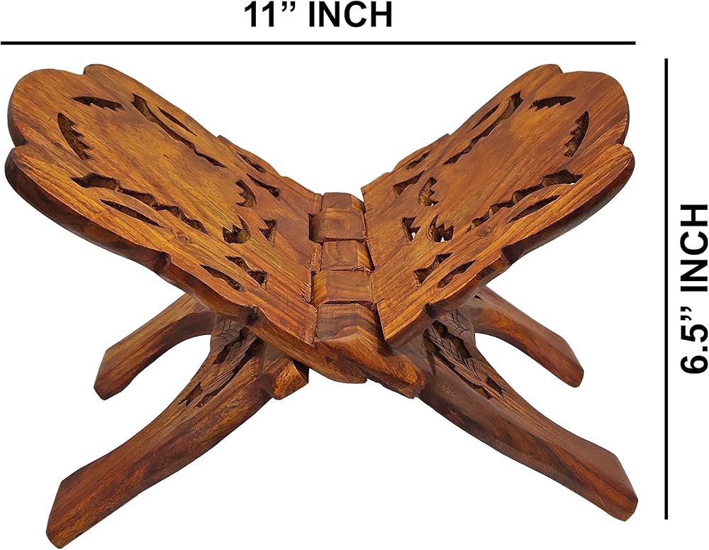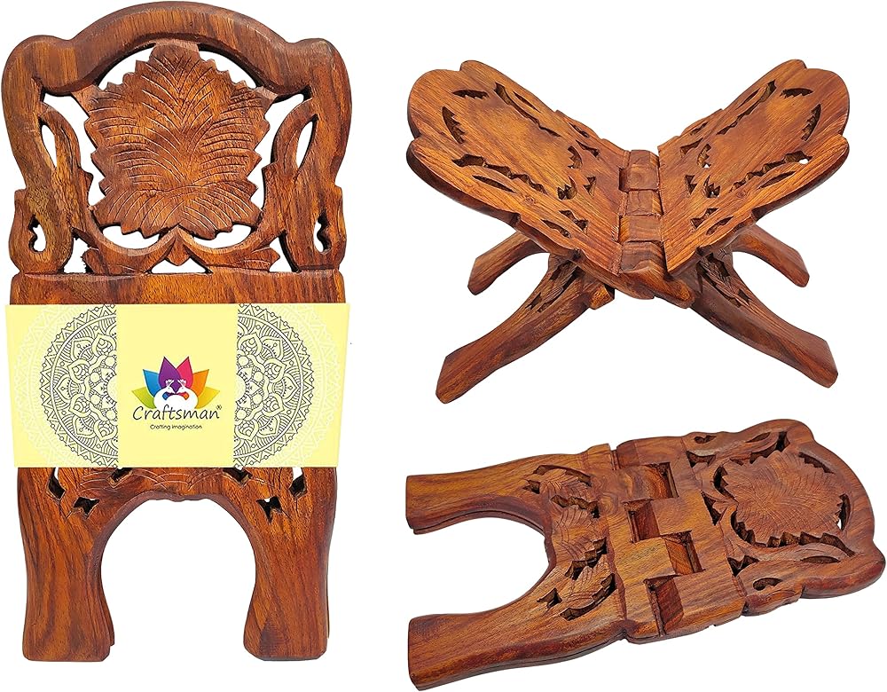 Craftsman 12 Inch Rahel Holy Book Stand for Pooja puja Gita Quran Bible Stand Holder. Folding Religious Rosewood Prayer Wooden Book (12 Inch) (12 Inch) (3. Brown)