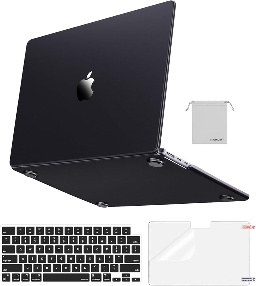 MOSISO for MacBook Air 15 inch Case M5 2026 M4 M3 M2 2025-2023 A3448 A3241 A3114 A2941, 4 in 1 Kit Seamlessly Closes Anti-Fingerprints Matte Hard Shell,Great for Business Travel Study, Black Clear