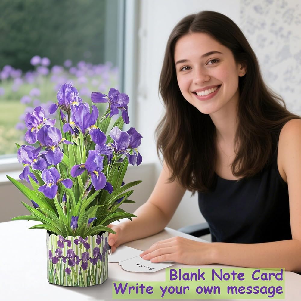 3D Greeting Cards Pop Up Cards 16" Iris Paper Flower Bouquet Gifts for Women Mom Wife Birthday, Anniversary, Get Well with Note Card & Envelope, Romantic Iris