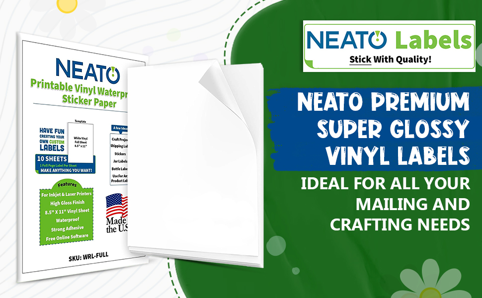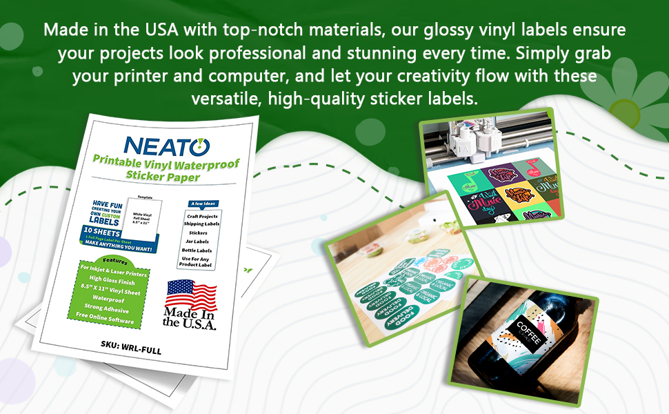 Premium American quality: Manufactured in the USA, these glossy waterproof labels contain zero harmful chemicals, making them safe for use in various applications. Order your premium super glossy labels 100 percent risk free. Neato Labels backs our product with a 100 percent money back guarantee.