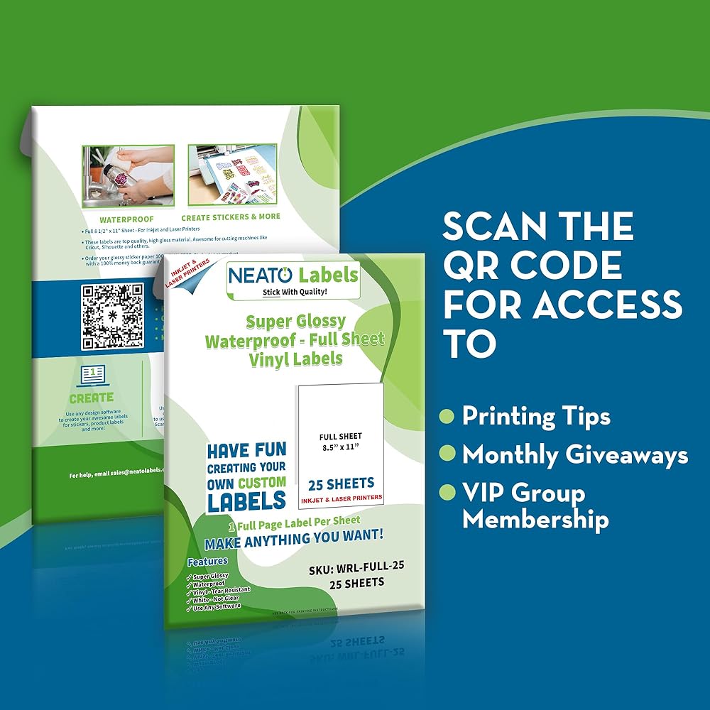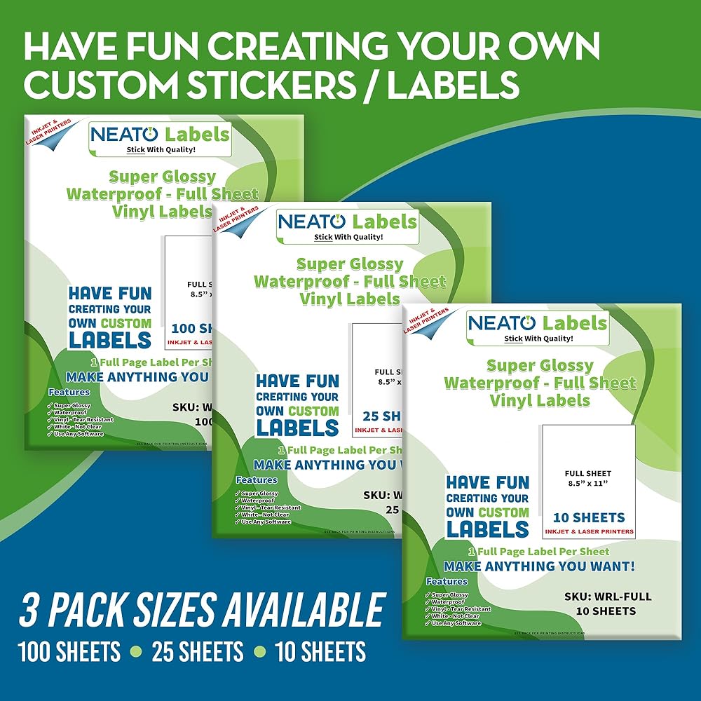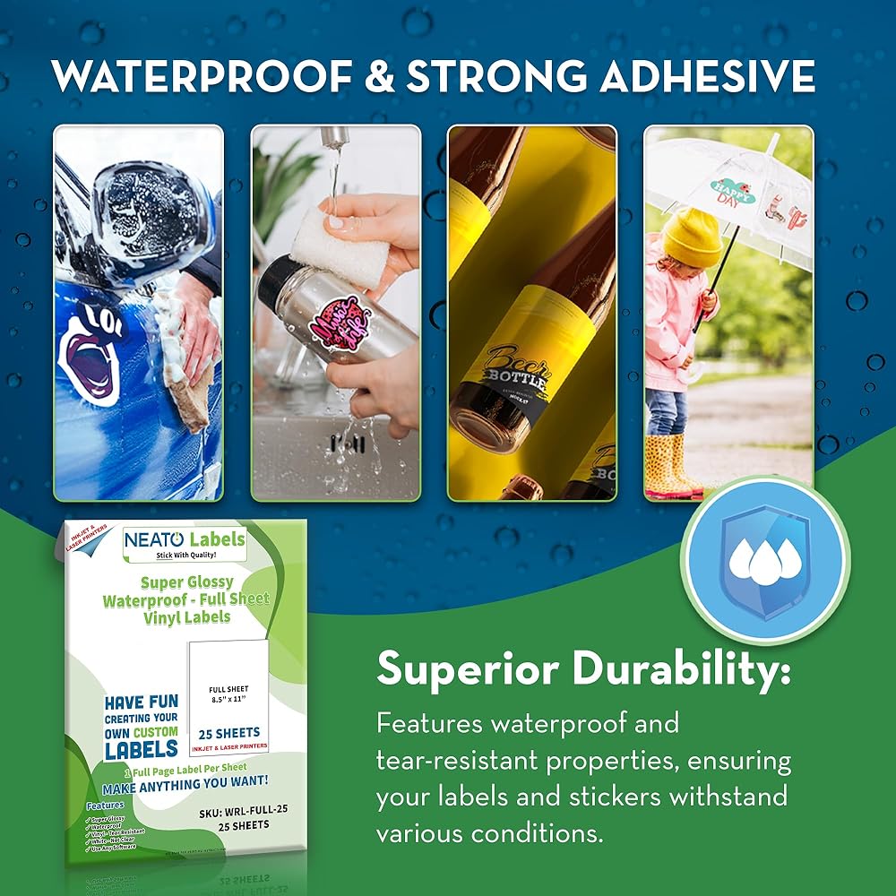 Versatile & customizable: With a full 8.5" x 11" sheet size, these glossy labels are compatible with inkjet and laser printers, allowing you to print your custom designs and create various items, from craft labels to party favors and more.