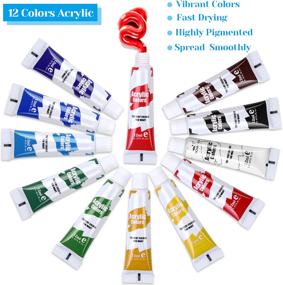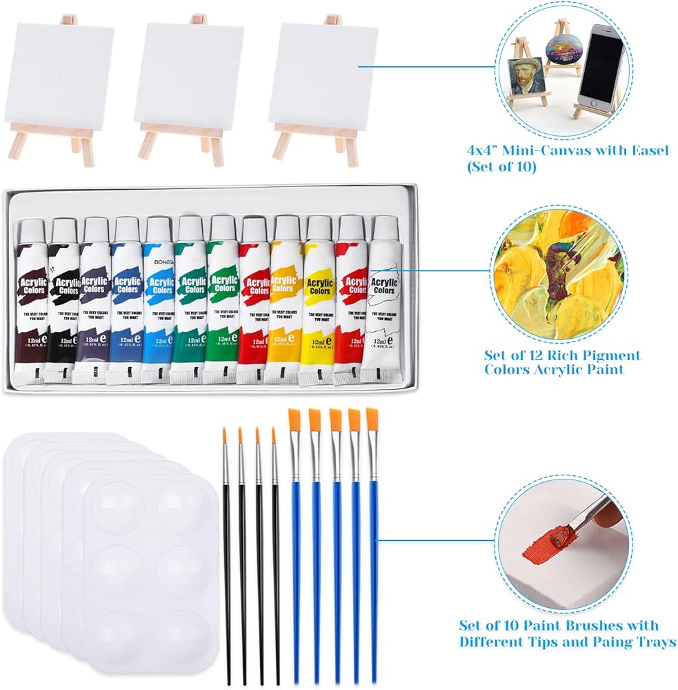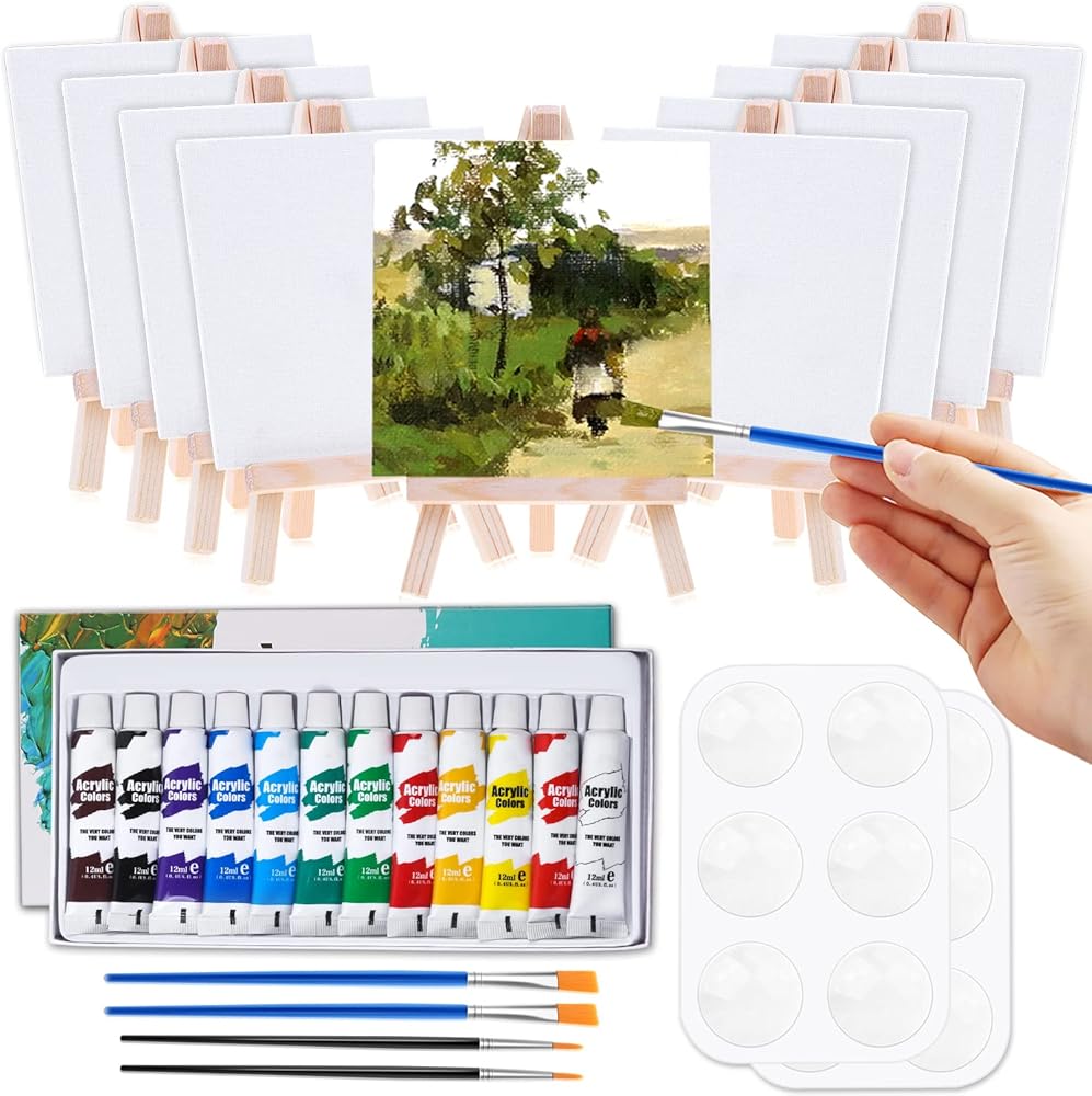 Mini Canvas and Easel, Cridoz 47 Pieces Mini Canvas Painting Set Includes 4x4 Inches Primed Canvas, Mini Easel, Acrylic Paint, Paintbrushes and Palette for Kids Artists Art Party