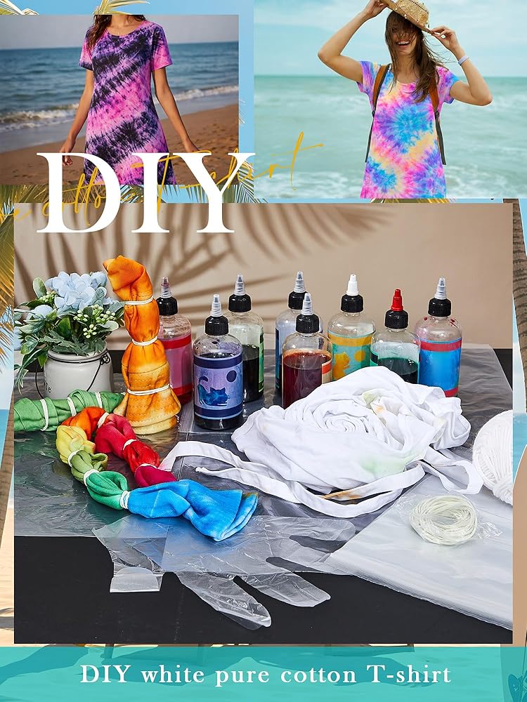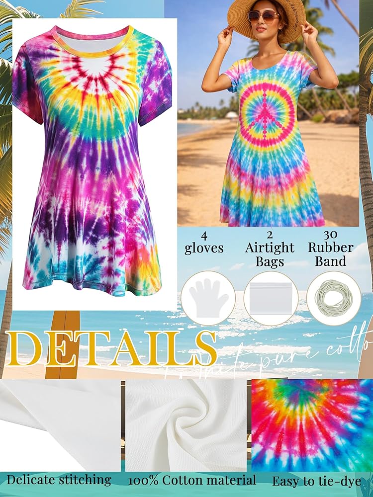 Unveil your creative side and captivate everyone around you with this remarkable DIY tie dye dress kit. The product we offer is a plain, white, short-sleeved cotton dress that is designed for you to Stimulate your creativity. Play with colorful dyes and patterns to create a unique piece that reflects your personality and style.