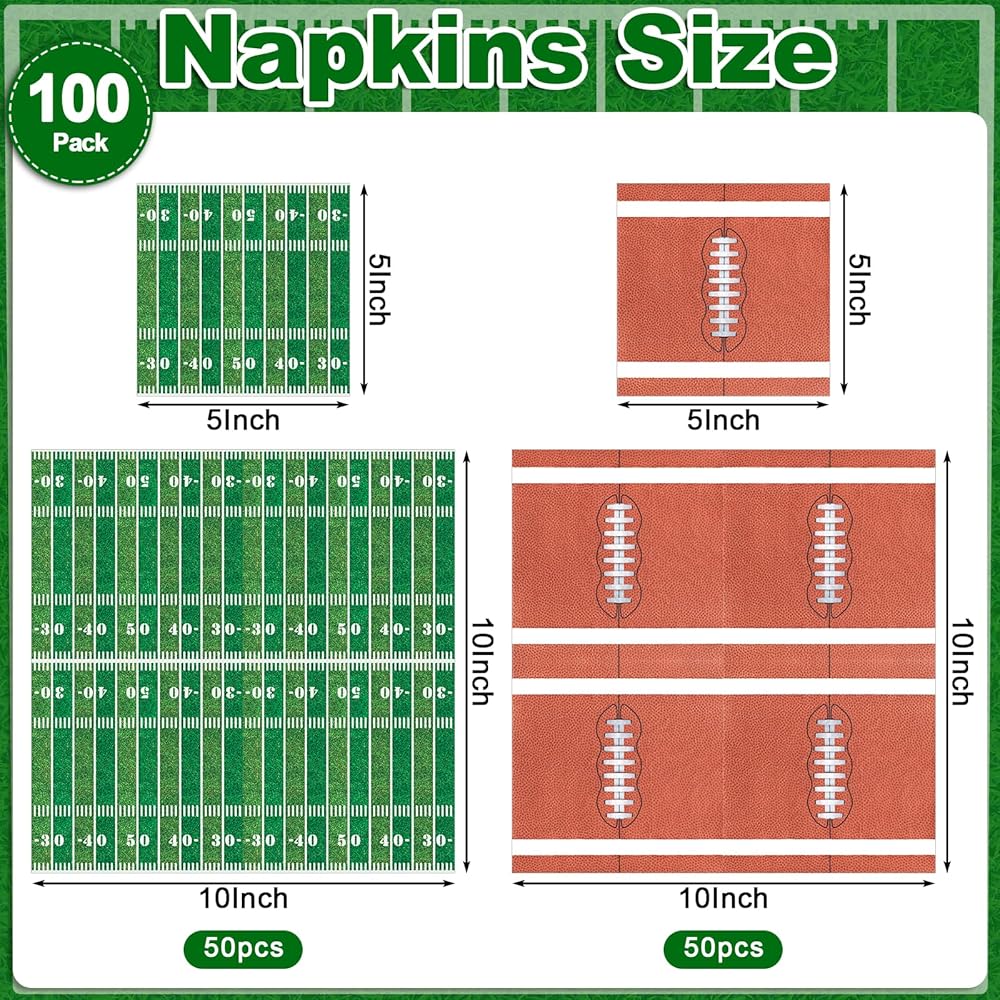 Package Includes: You will get 100 pcs football party napkins,each football napkin measures 12.5x12.5cm/5x5inch (folded) and 25x25cm/10x10inch (unfolded). Enough to meet the needs of your daily and party use