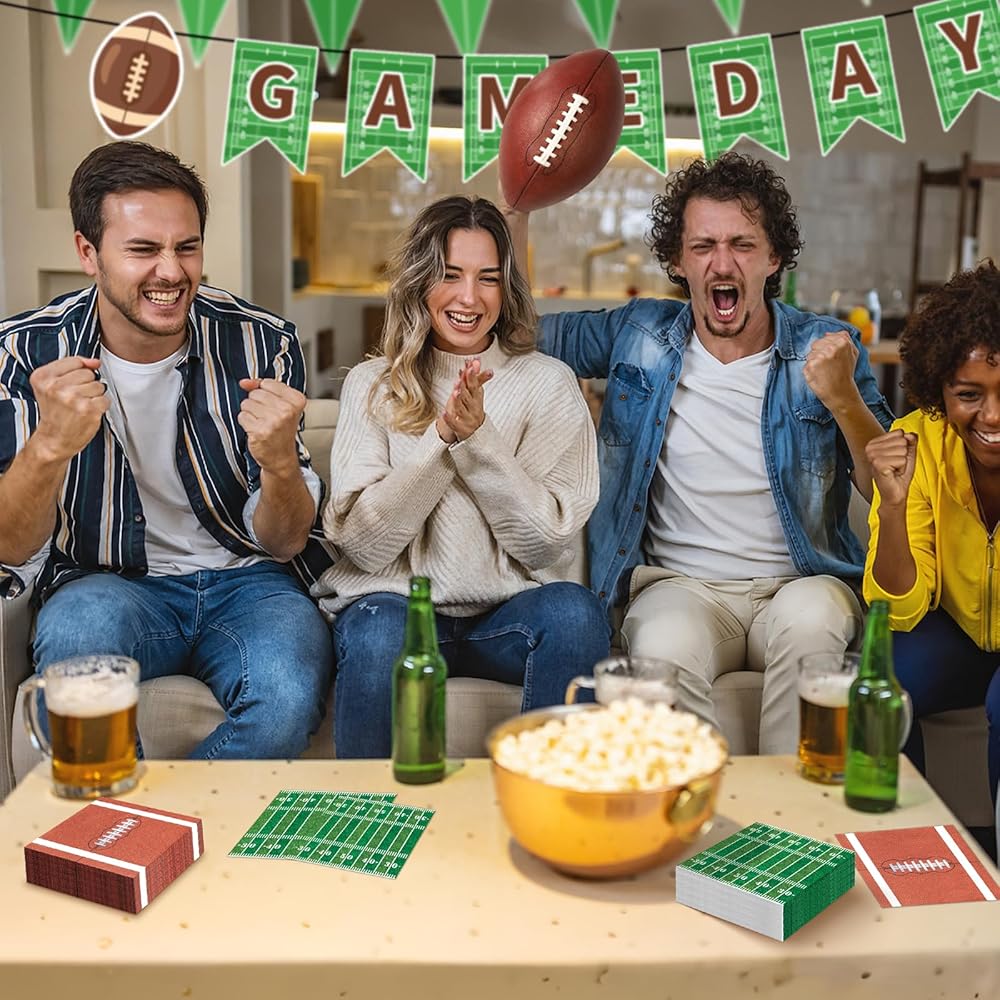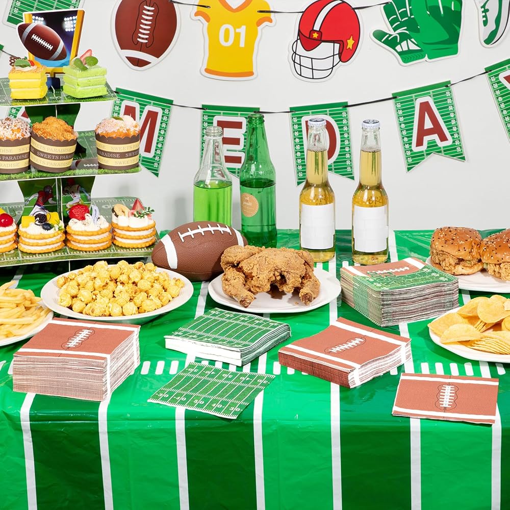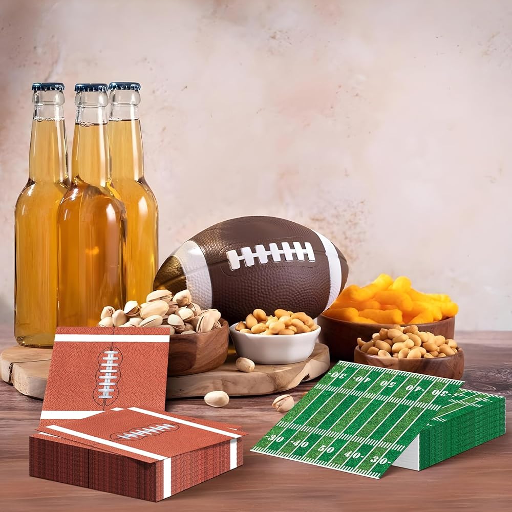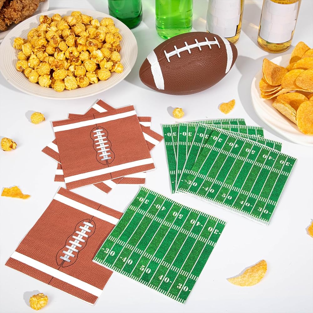 2 Kinds Pattern Design: Football party napkins design 2 patterns such as football field and football, which can better create a footabll party atmosphere and help celebrate moment of game day heart