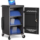 COMPATIBLE WITH MOST DEVICES: This electronic device organization cart with wheels is universal for most tablet computer, and can hold up to 14'' laptop screen. Our C30B is the perfect charging cart for 13-inch tablet and big 14-inch laptop.