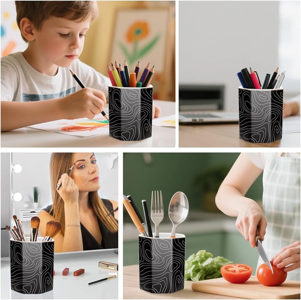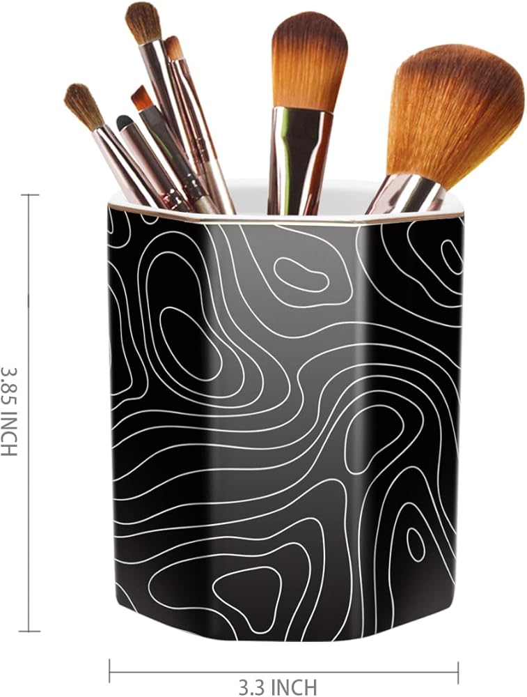 【Makeup Brush Holder Organizer】Pencil holder measures 3.94" H, 3.35" W, It holds lots of pens and pencils makeup brush, keeps everything pretty organized and that will dress up your desk and office in a simple and elegant way.