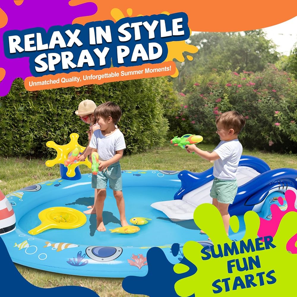 The Inflatable Kids Swimming Pool Water Slide is the ultimate play center for summer fun! This vibrant inflatable pool features a thrilling water slide that lets kids splash down into the refreshing water, providing hours of entertainment. Designed for safety and durability, it's made from high-quality materials that can withstand active play. With its spacious design, multiple children can enjoy the pool at once, making it perfect for playdates or family gatherings. Easy to set up and store, this blow-up pool is a fantastic addition to any backyard, ensuring endless summer memories for your little ones!