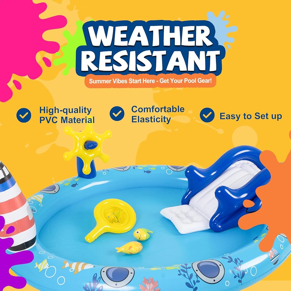 Spacious Design: Measuring 76.5in x 59.5in x 29.5in, the pool provides ample space for kids to splash and play.