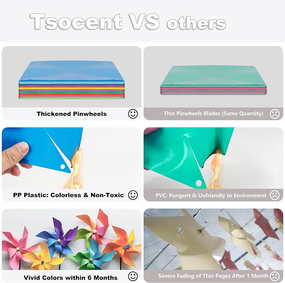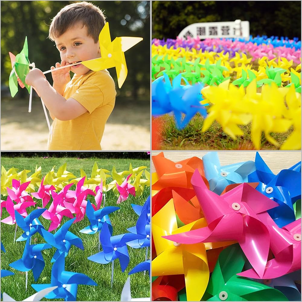 【Durable PP Material】Crafted from thick PP material, these 50 pinwheels are not only sturdy but also resistant to dust, water, and fading. This ensures that they can maintain their vivid colors and smooth spinning function.