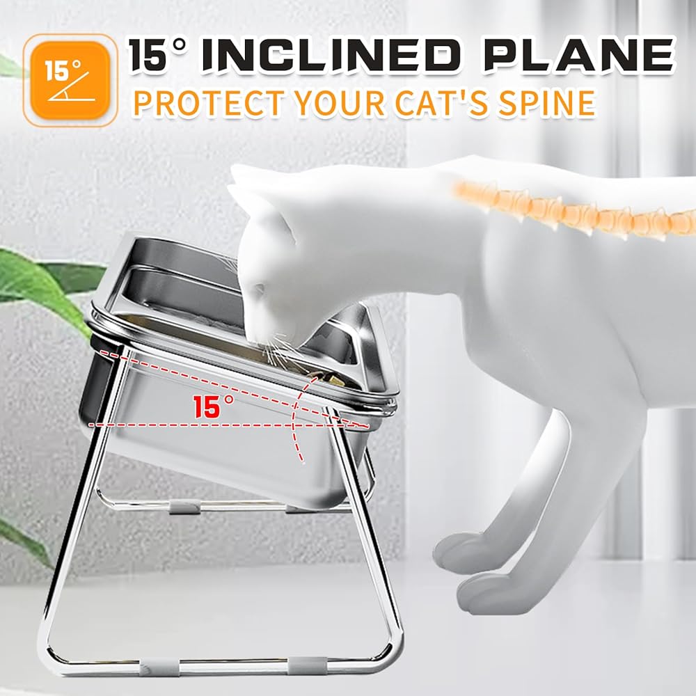 Upgraded Elevated Cat Bowls,15°Tilted Stand Anti Vomiting Raised Cat Dishes for Food and Water,304 Stainless Steel Bowls for Cats and Puppy