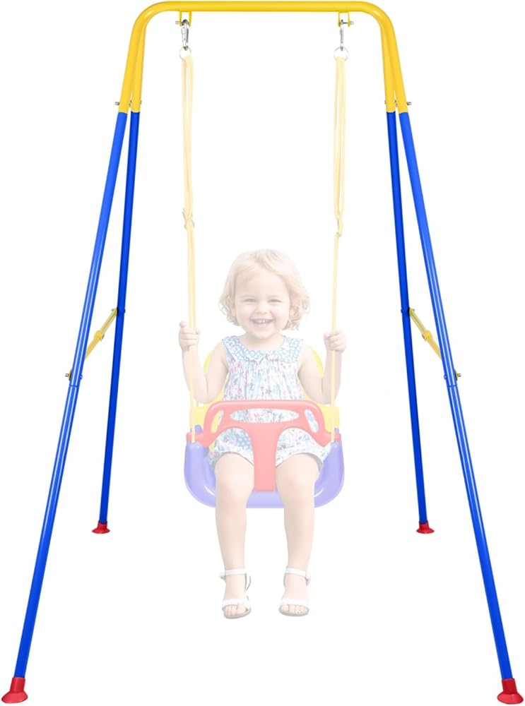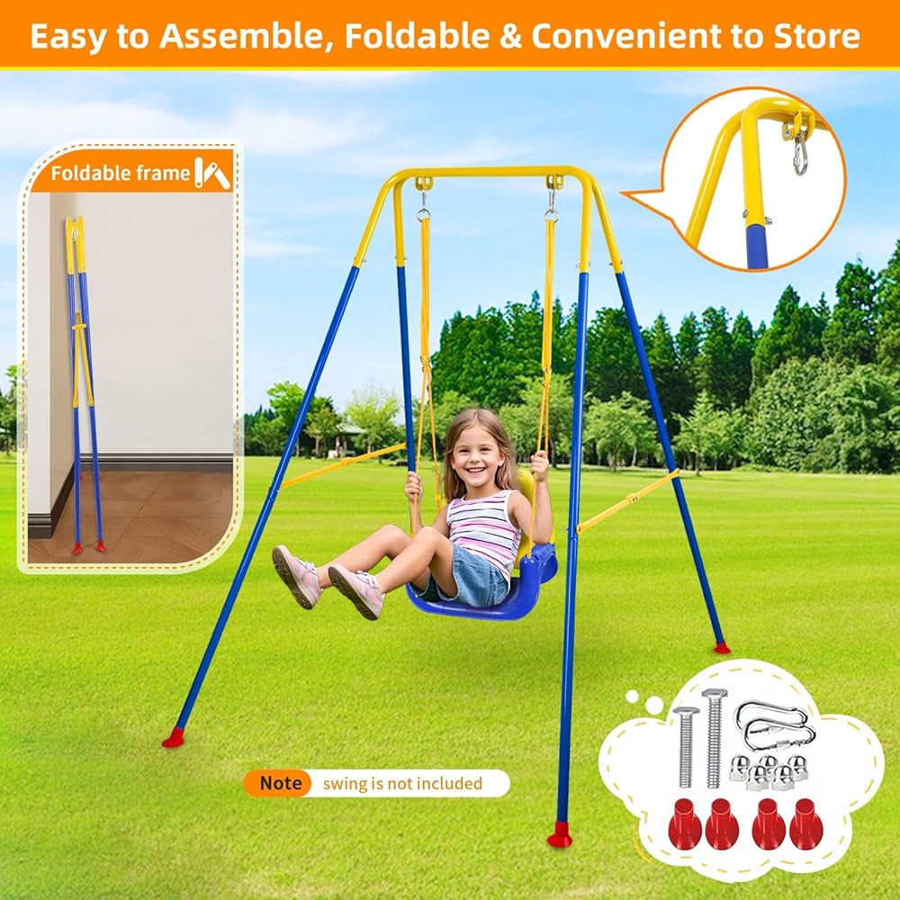 【Easy to Assemble & Store & Foldable】Foldable swing stand is easy to assemble and store. It can be assembled in about 10 minutes with instructions. You can assemble it with your child, exercise their hands-on skills, and enjoy parent- child time. It is also easy to fold and store at home or take it away to the park or playground and let your kid enjoy swinging anytime any anyplace