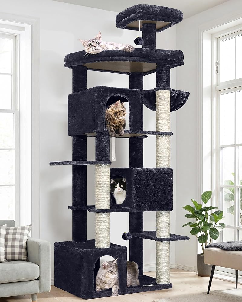 Ideal for Multi-Cat Households: 80 inches extra large heavy duty cat tree tower is equipped with 3 spacious cat condo house(17.71"x11.81"x11.81") designed for multiple large indoor cats, ladder layout to suit different cat mobility and preferences, double door design for easy cleaning, effectively alleviate multi-cats territorial disputes