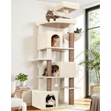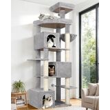 Full Sisal-Wrapped Scratching Post: This tall cat scratching tree tower features 6 tightly wrapped scratching posts with natural sisal rope to provide a rich scratching area, keeping paws healthy and reducing furniture scratching. The multi-height design allows cats of all ages to find the right scratching position to meet their scratching needs