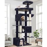 Globlazer Cat Tree for Indoor Cats Large Adult, 80in Heavy Duty Cat Tower with 6 Full Wrapped Sisal Scratching Posts, 3 Spacious Multi-Level Cat Condos, Oversized Fan-Shaped Perch, S80, Dark Grey