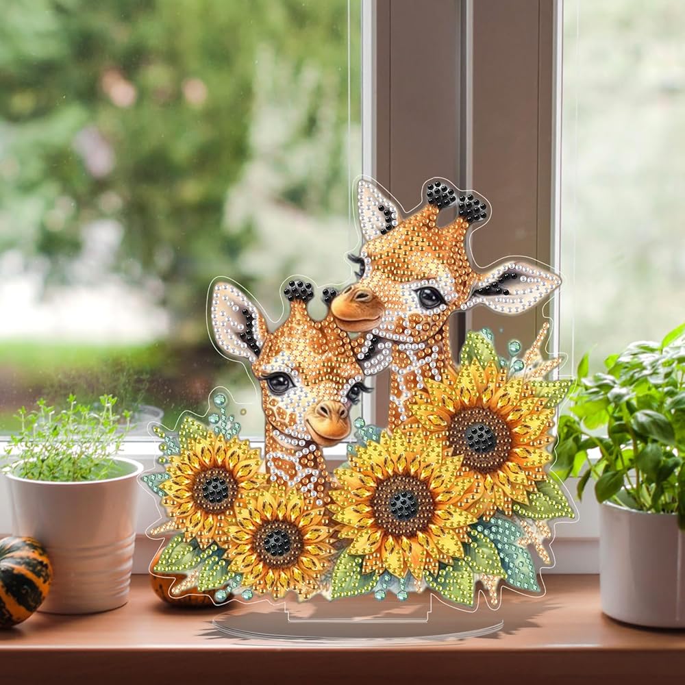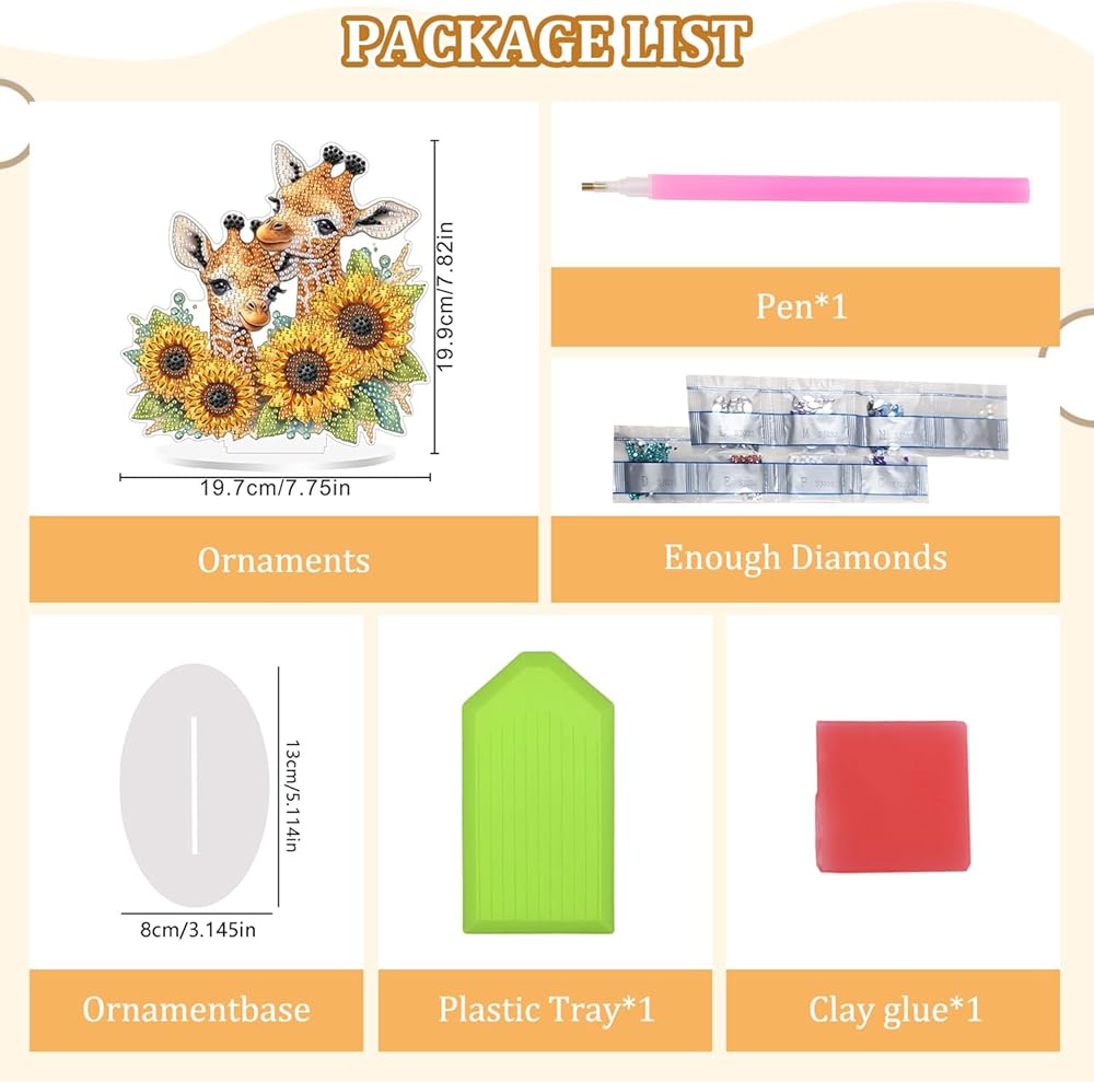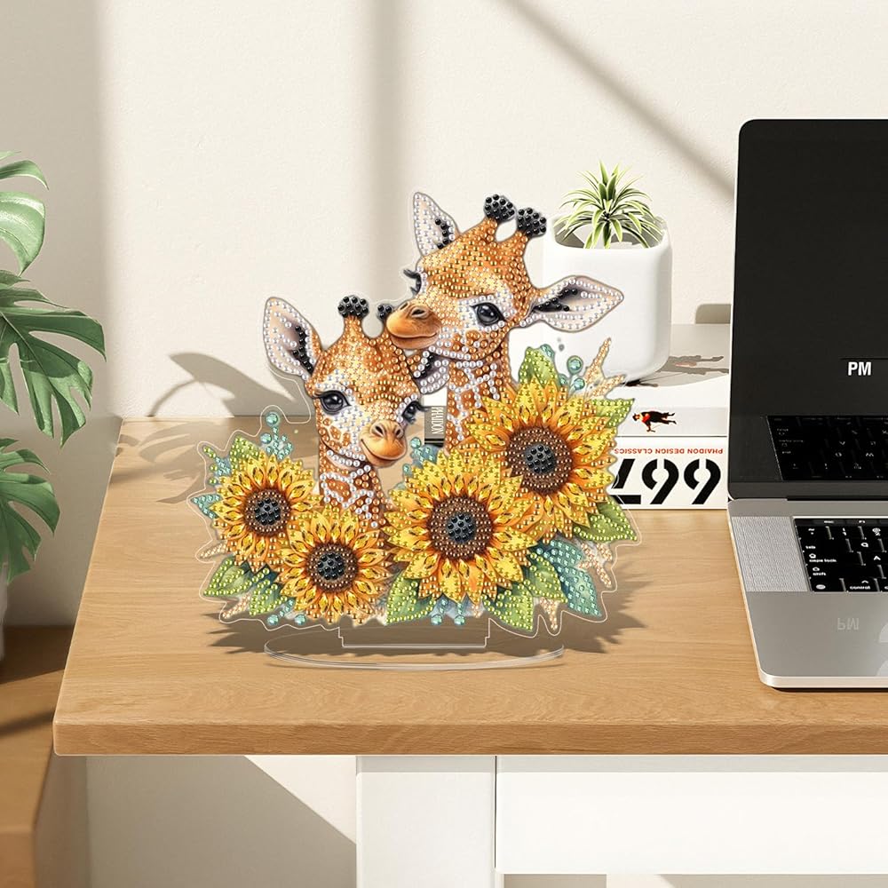 Bowetile Giraffe Diamond Art Desktop Ornaments Kits for Adults Beginners, 5D Special Shape Diamond Art Painting Animals Tabletop Ornaments, Crystal Gem Art Painting for Home Table Decor Crafts Gift