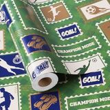 Double-side Soccer Design: One side of this wrapping paper roll is printed with a green background featuring soccer balls, trophies, and "Goal", "Happy Birthday", and the reverse side with a bold black-and-white soccer ball print. It adds an instant dose of joy and celebration to your gifts